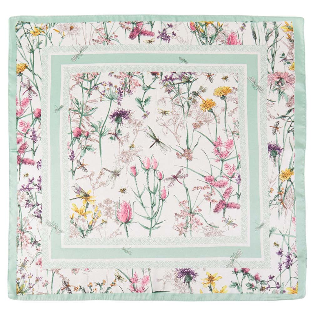 Watercolor Botanical Printed Square Silky Satin Bandana Scarf