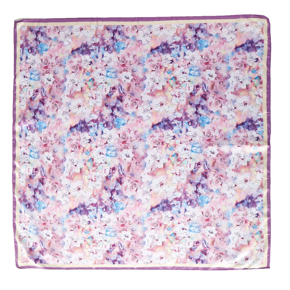 • This square scarf showcases a dreamy watercolor floral pattern that adds an elegant, artistic touch to any outfit. Its lightweight feel and versatile design make it perfect for styling as a neck scarf, hair accessory, or handbag accent, enhancing everyday looks with effortless charm.