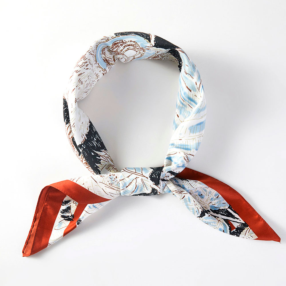 Details • Size : 27.5" X 27.5" • Material : 100% Polyester • Elevate your look with this whimsical square scarf featuring a playful squirrel surrounded by lush foliage artwork. Designed with a detailed nature illustration framed in an elegant border, this versatile accessory adds charm whether styled around the neck, hair, or bag. A unique gift for animal lovers and a standout piece for everyday outfits.