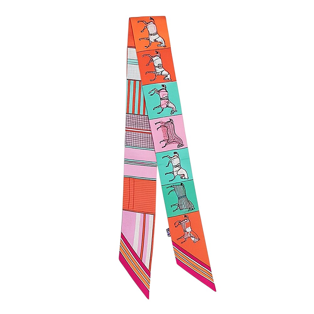 • Elevate your look with this striped horse print skinny silk scarf, available in multiple vibrant colorways. Its playful equestrian motif and bold stripes make it a versatile accessory to style around the neck, wrist, hair, or handbag for a chic and fashionable touch.