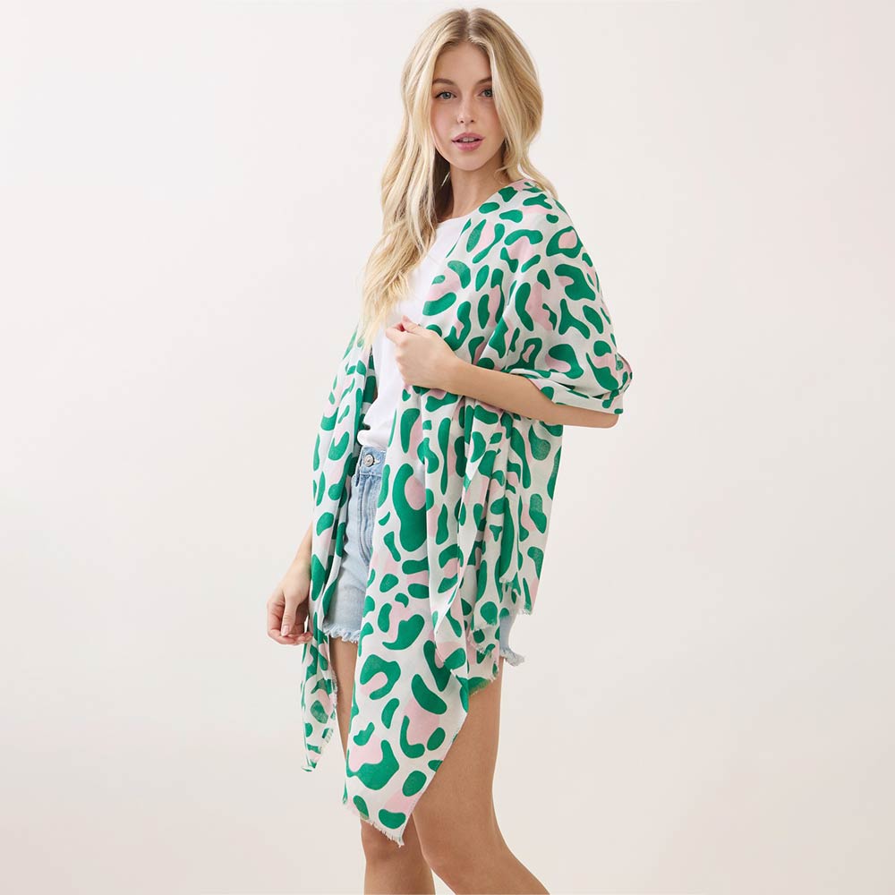 • Oversized kimono-style wrap with an abstract animal-inspired pattern, ideal for layering over casual or resort looks. Drapes effortlessly as a shawl or coverup, making it a versatile boutique staple for travel, gifting, and seasonal styling.