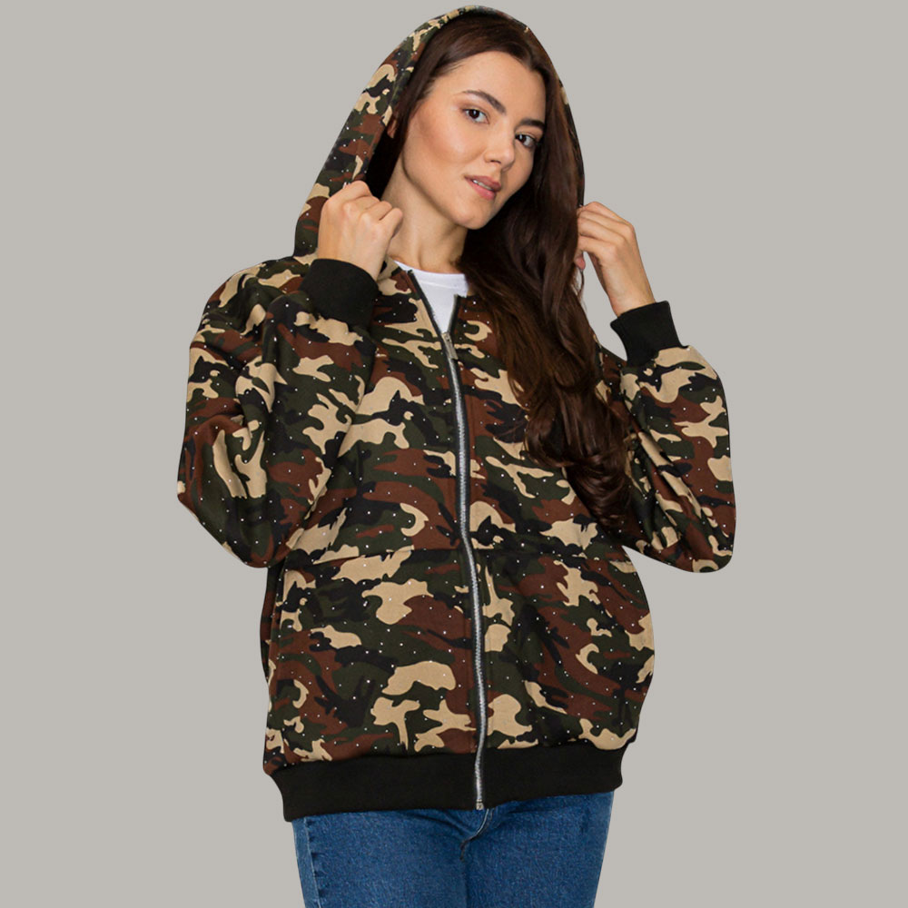 Rhinestone Studded Camouflage Pattern Hooded Jacket Rhinestone Studded Camouflage Pattern Hooded Jacket Rhinestone Studded Camouflage Pattern Hooded Jacket
