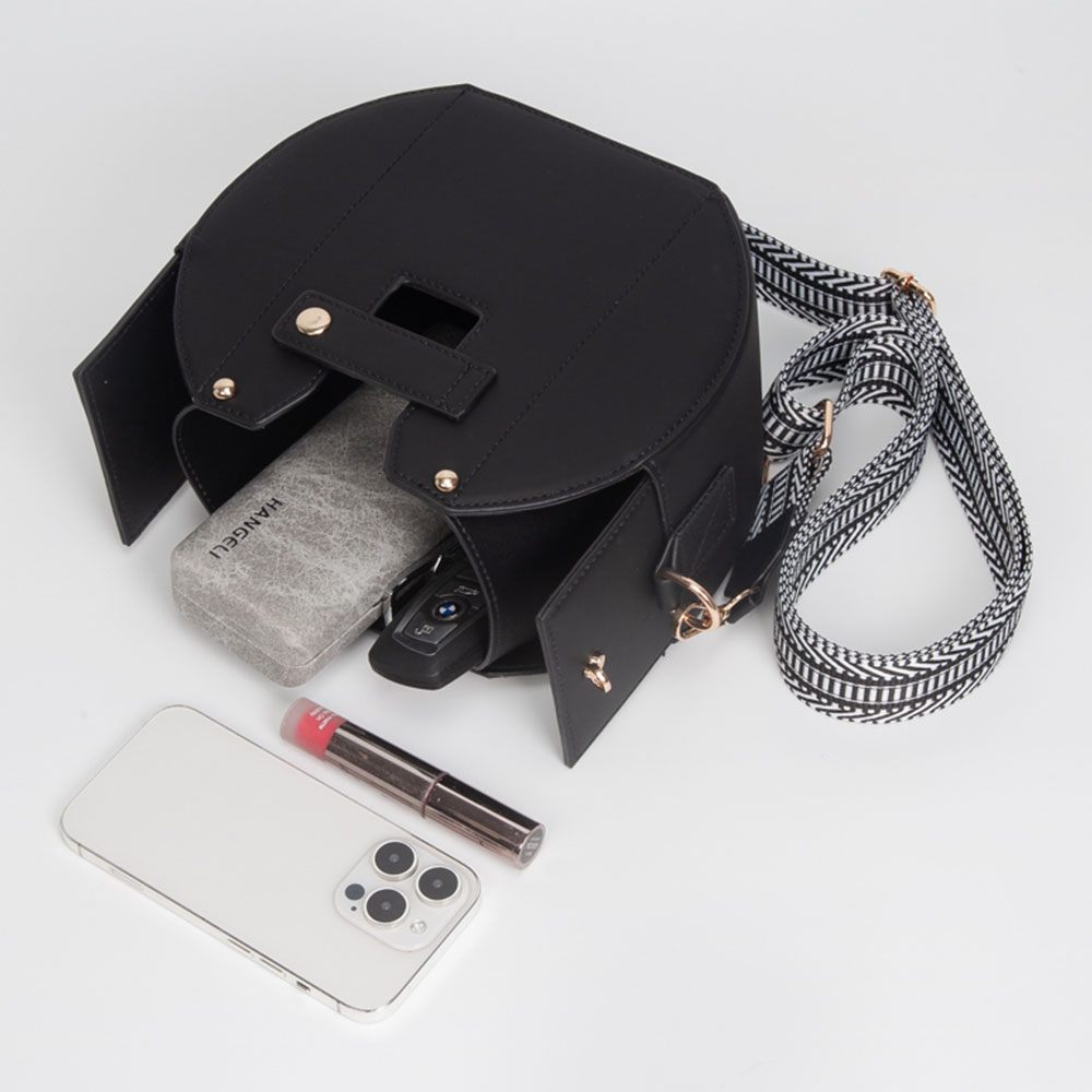Faux Leather Functional Tumbler Crossbody Bucket Bag