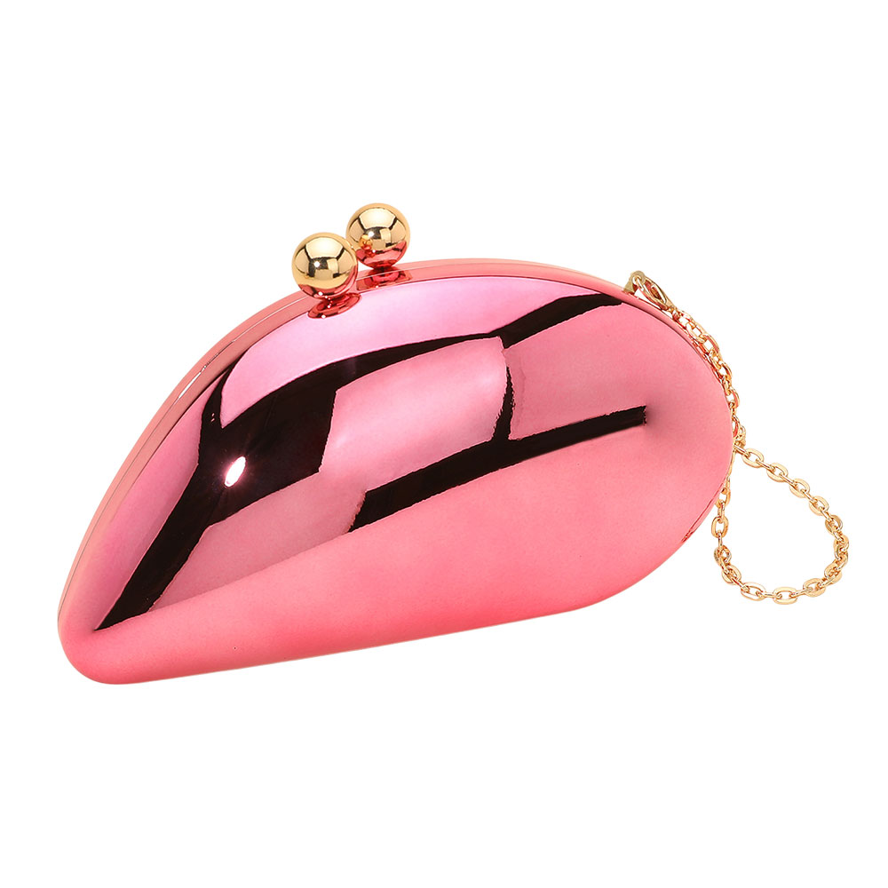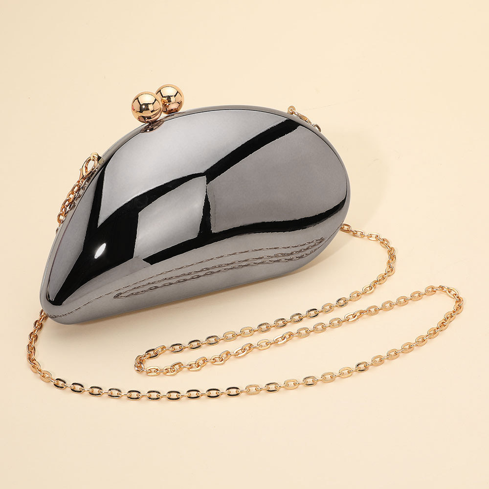 • Elevate any outfit with this modern teardrop-shaped evening clutch, designed with a smooth reflective finish and a chic chain strap. Its secure clasp closure and sculptural silhouette make it a standout accessory perfect for formal events, nights out, or special occasions.