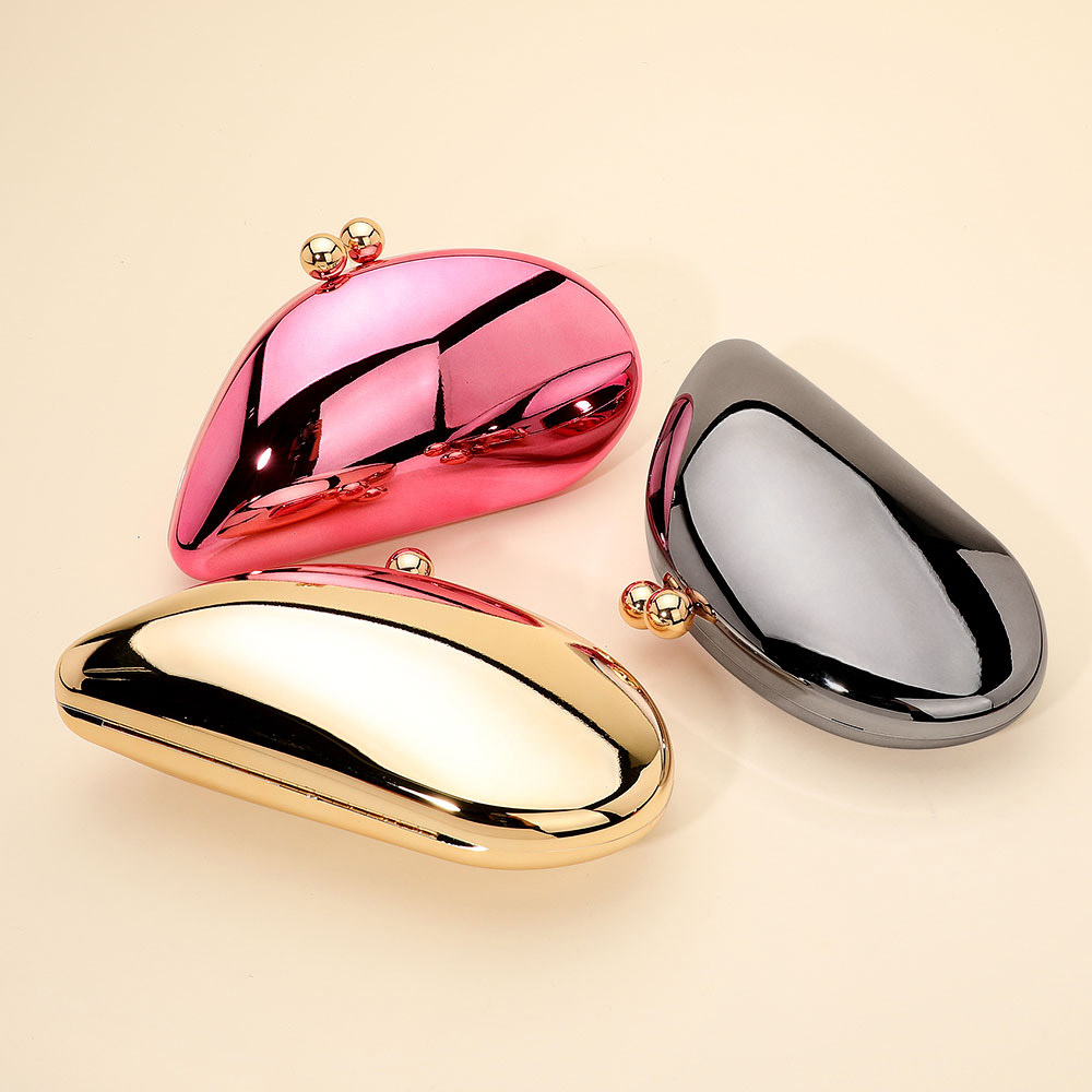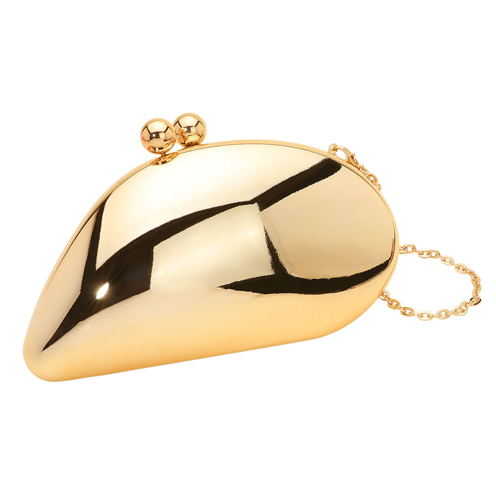 • Elevate any outfit with this modern teardrop-shaped evening clutch, designed with a smooth reflective finish and a chic chain strap. Its secure clasp closure and sculptural silhouette make it a standout accessory perfect for formal events, nights out, or special occasions.