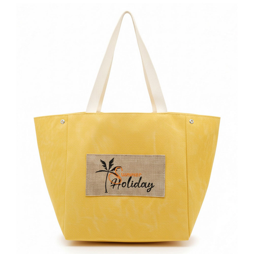 • Spacious everyday tote bag designed with a message patch for casual outings, travel, beach trips, and seasonal retail displays. Features a roomy interior and comfortable shoulder straps, making it ideal for carrying daily essentials, vacation must-haves, and warm-weather lifestyle accessories.
