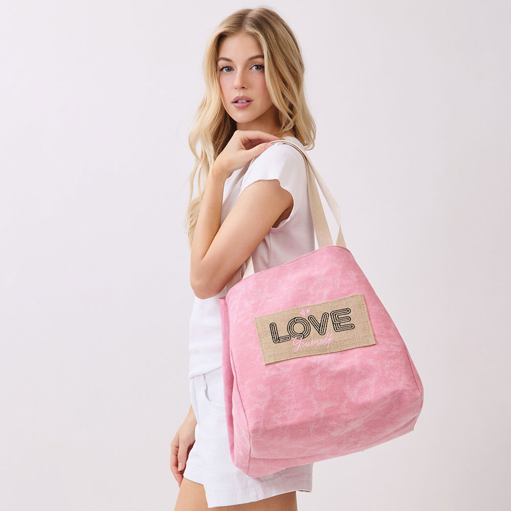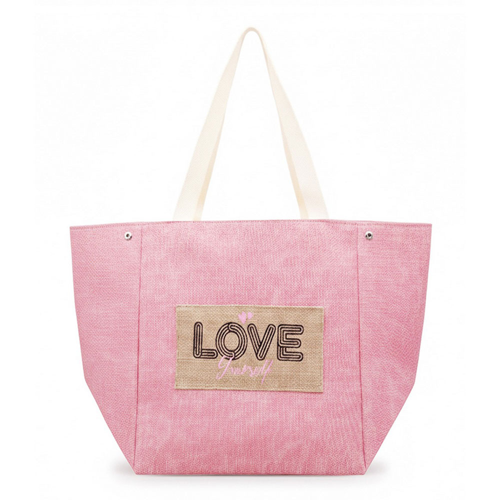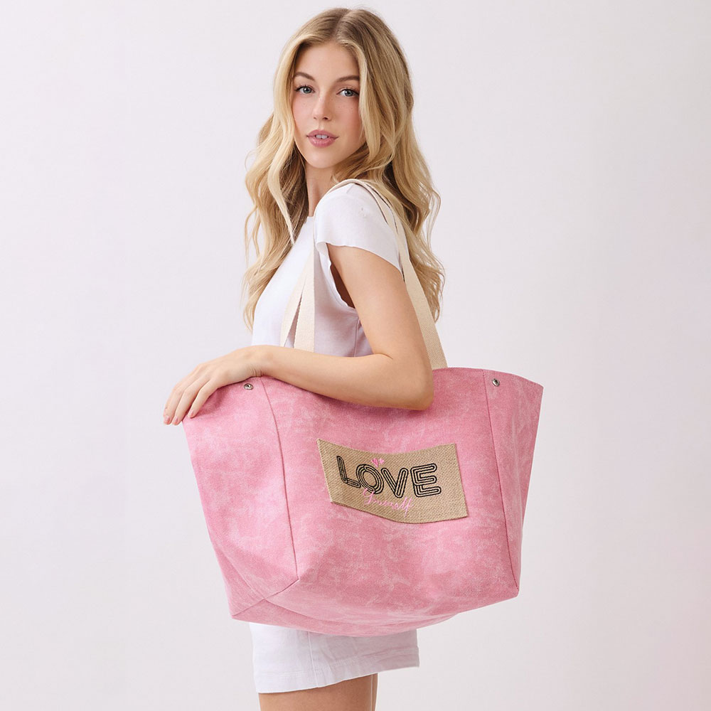 • Spacious everyday tote bag designed with a message patch for casual outings, travel, beach trips, and seasonal retail displays. Features a roomy interior and comfortable shoulder straps, making it ideal for carrying daily essentials, vacation must-haves, and warm-weather lifestyle accessories.