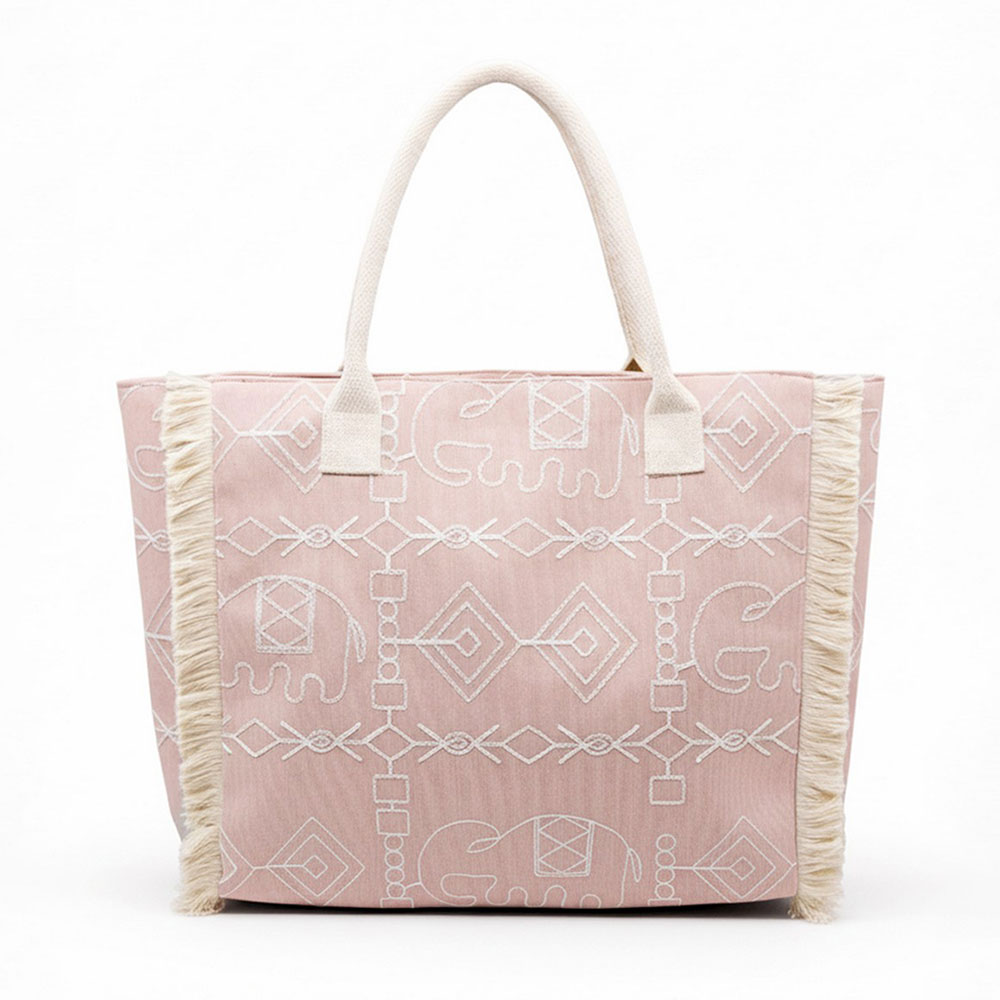 • Stylish everyday tote featuring a spacious interior, sturdy shoulder straps, and decorative fringe trim with an allover elephant patterned design. Ideal for shopping, travel, beach days, or casual outings, offering versatile storage and easy carry appeal for boutique and lifestyle customers.