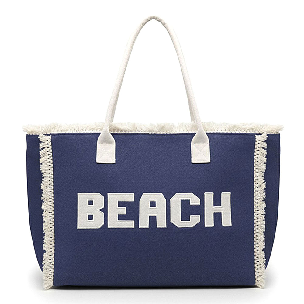 Bold BEACH Letter Embroidered Fringe Tote Bag
