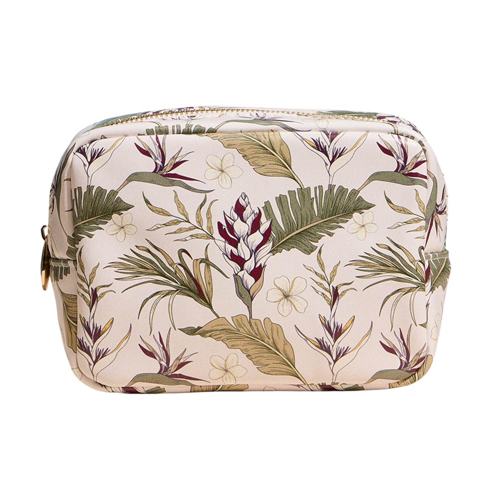 Details • Size : 7" X 5" X 2.5" • Zipper Closure • Elegant botanical print cosmetic pouch designed for organizing makeup, skincare, and daily essentials. Features a structured shape with a secure zipper closure and roomy interior, making it ideal for travel, handbags, or vanity use. A versatile organizer that also works as a thoughtful gift for everyday storage needs.