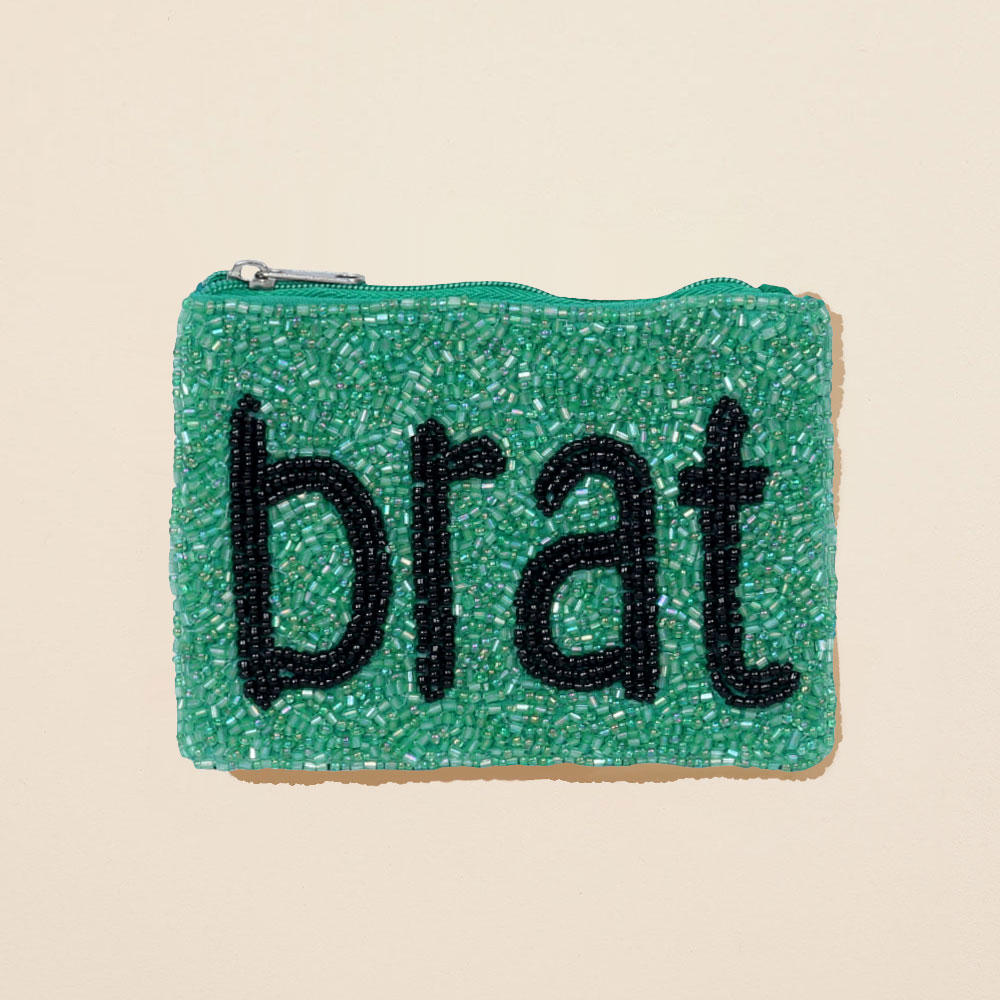 Details • Size : 5" X 3.75" (appx) • No Inside Pocket • Beads On Front Only • Bag Only (items are not included) • Zipper Closure • Show off playful attitude with this beaded coin pouch featuring bold “brat” lettering. Compact yet eye-catching, it keeps essentials secure while adding a fun statement to any outfit. Perfect for gifting or everyday use with a quirky, personality-filled touch. • Made In India