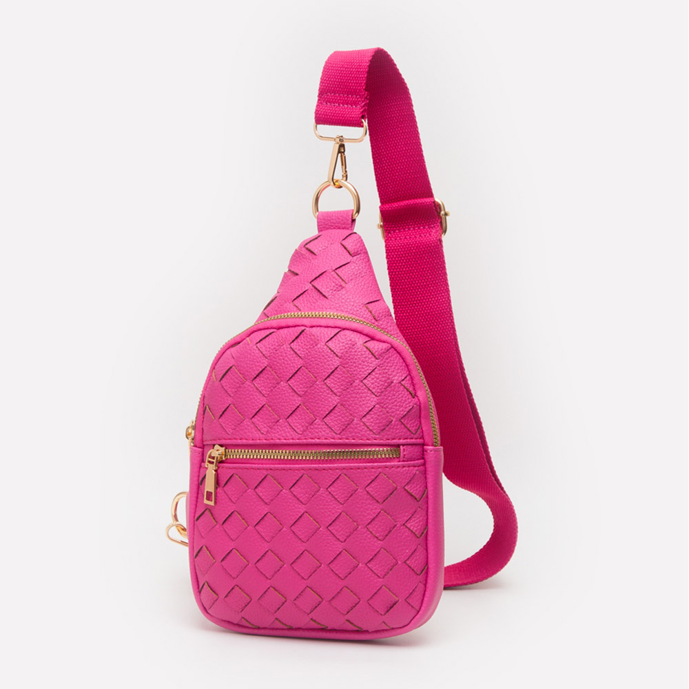 Details • Size : 6.5" X 11" X 1" • Strap Size : 49.5" L / Detachable, Adjustable • Zipper Closure • Two Outside Zipper Pockets • One Inside Slip Pocket • Add stylish convenience to your day with this woven pattern sling crossbody bag. Featuring a compact design, adjustable strap, and secure zip compartments, it’s the perfect everyday accessory for keeping essentials close while elevating your casual or travel look.