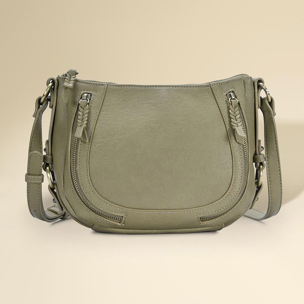 • Functional crossbody bag featuring dual zippered front pockets, braided pull accents, and an adjustable strap for versatile wear. Designed for daily use with a compact, stylish profile and practical storage.