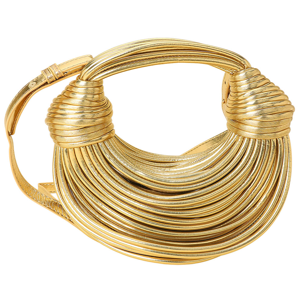 • Stand out with this textured statement shoulder bag featuring a sculpted design and intricate wrapped detailing. Its modern silhouette and artistic structure make it a versatile piece that adds a touch of high-fashion sophistication to any day or evening ensemble.