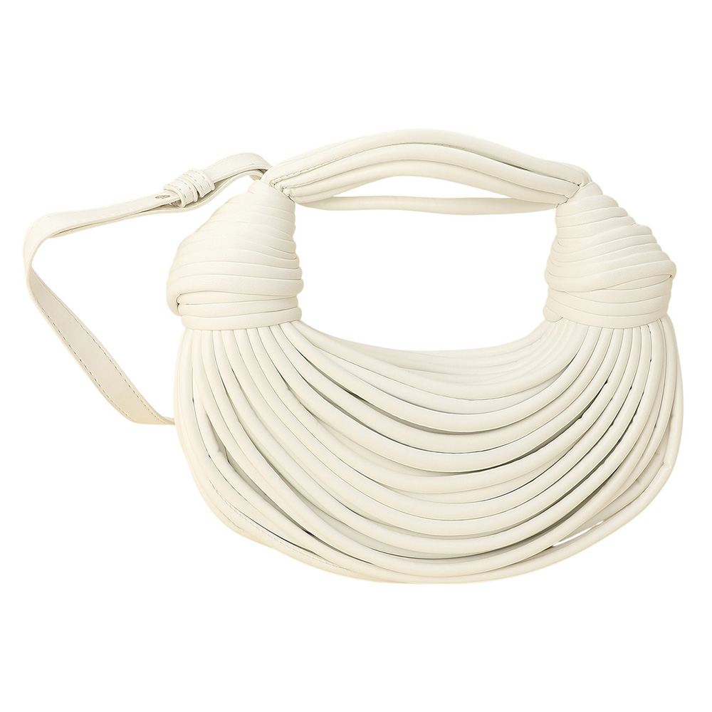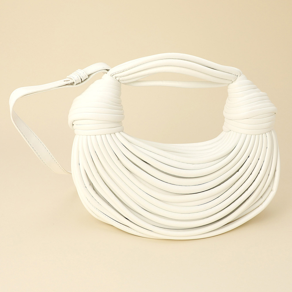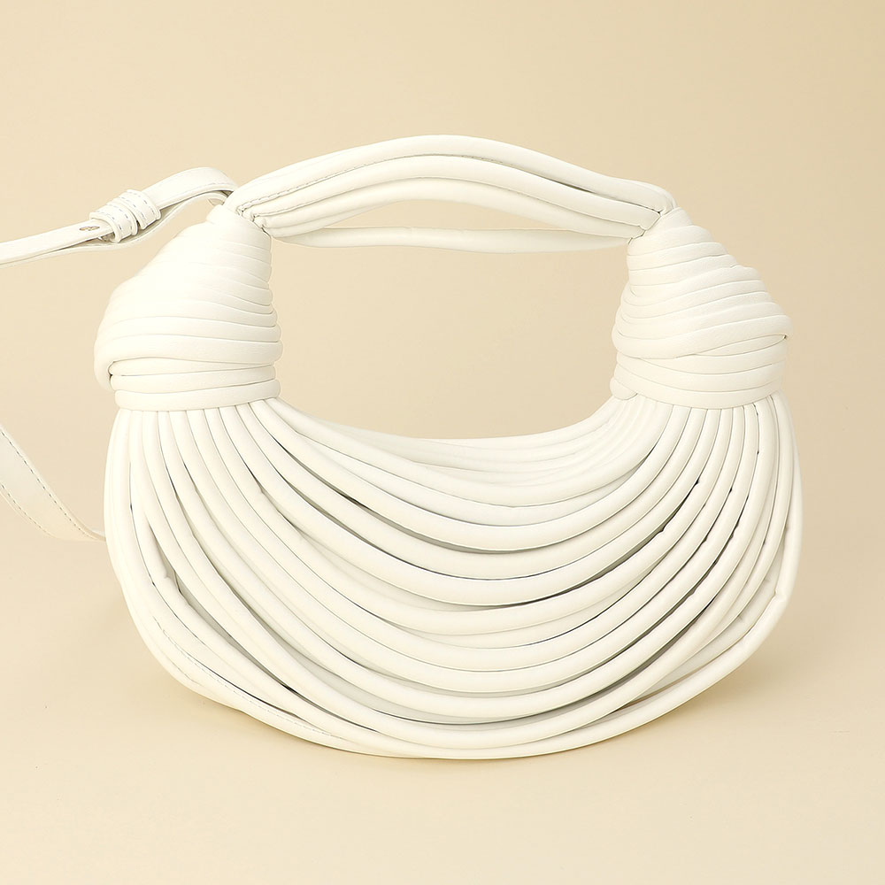 • Stand out with this textured statement shoulder bag featuring a sculpted design and intricate wrapped detailing. Its modern silhouette and artistic structure make it a versatile piece that adds a touch of high-fashion sophistication to any day or evening ensemble.