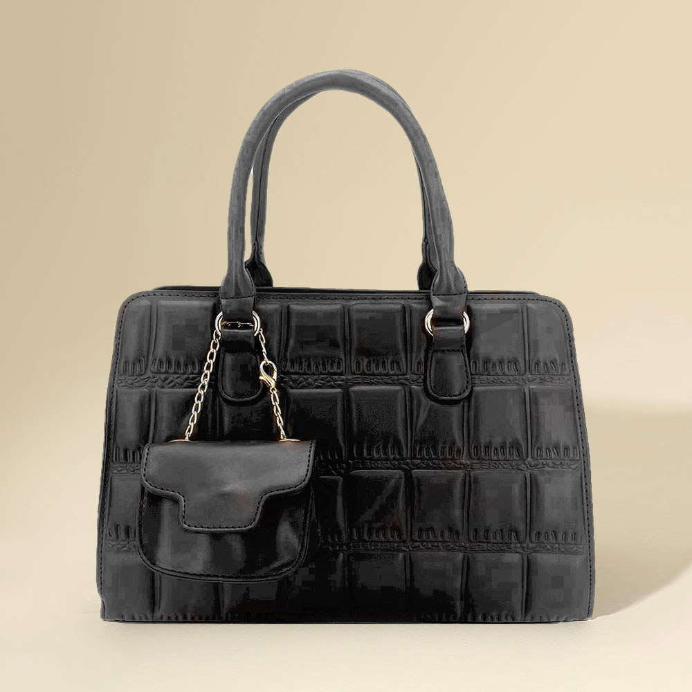 Details • Size : 12.5" X 4.5" X 8.5" • Top Handle Size : 5.25" L • Mini Bag Size : 3.8" X 1.75" X 3.2" • Crossbody Strap Size : Adjustable / Detachable • Zipper Closure • One Inside Slip Pocket • Elevate your style with this structured handbag featuring a chic embossed pattern and matching detachable mini pouch. Spacious yet refined, this versatile tote is perfect for work, casual outings, or special occasions, offering elegance and functionality in one.