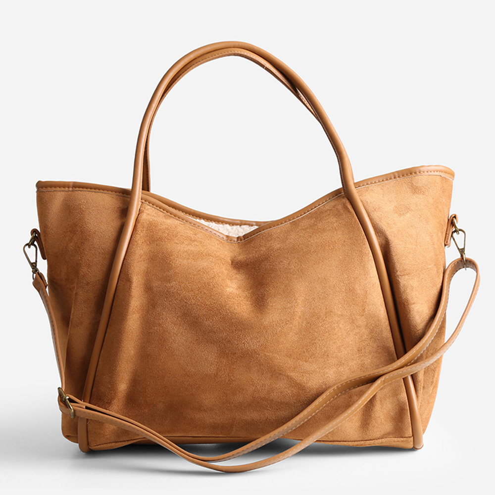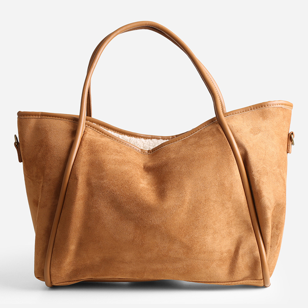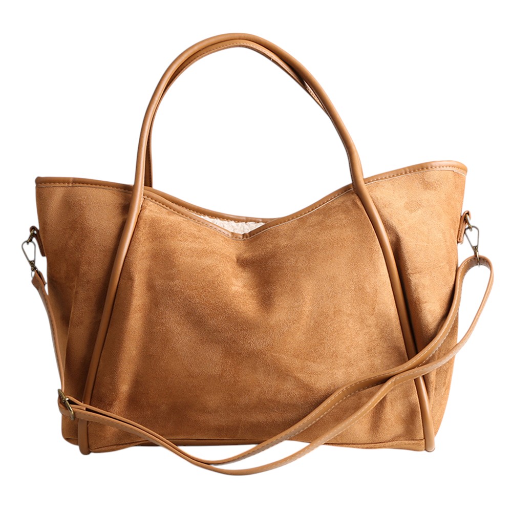 • This suede-style tote bag blends elegance with practicality, featuring dual handles for easy carrying and a roomy interior to keep essentials organized. A versatile design that transitions seamlessly from work to casual outings while adding a touch of sophistication.