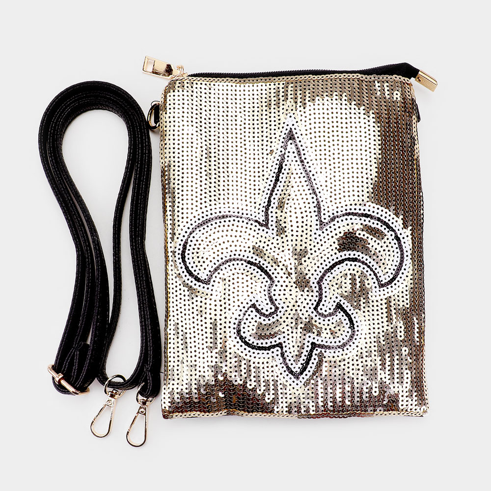 Fleur de Lis Accented Sequin Crossbody Bag