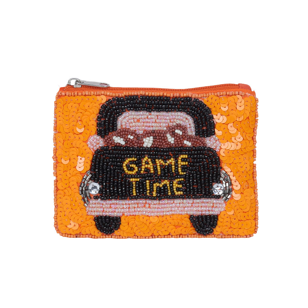 Details • Size : 5" X 3.75" (appx) • No Inside Pocket • Beads On Front Only • Bag Only (items are not included) • Zipper Closure • Add playful charm to your accessories with this handcrafted beaded coin pouch featuring a fun “Game Time” design. Its compact size keeps essentials secure while showcasing eye-catching detail, making it a perfect pick for gifting, everyday use, or game-day style. • Made In India