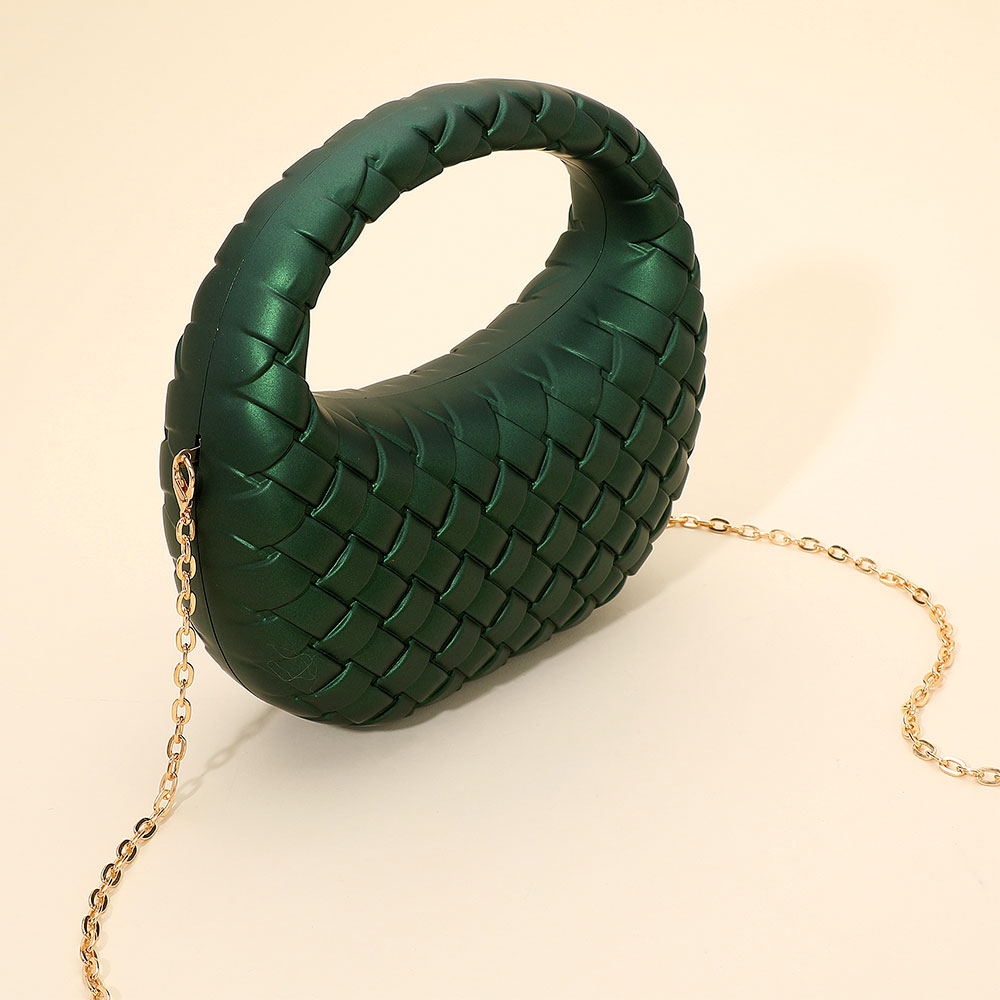 Hard Shell Braided Woven Top Handle Crossbody Handbag