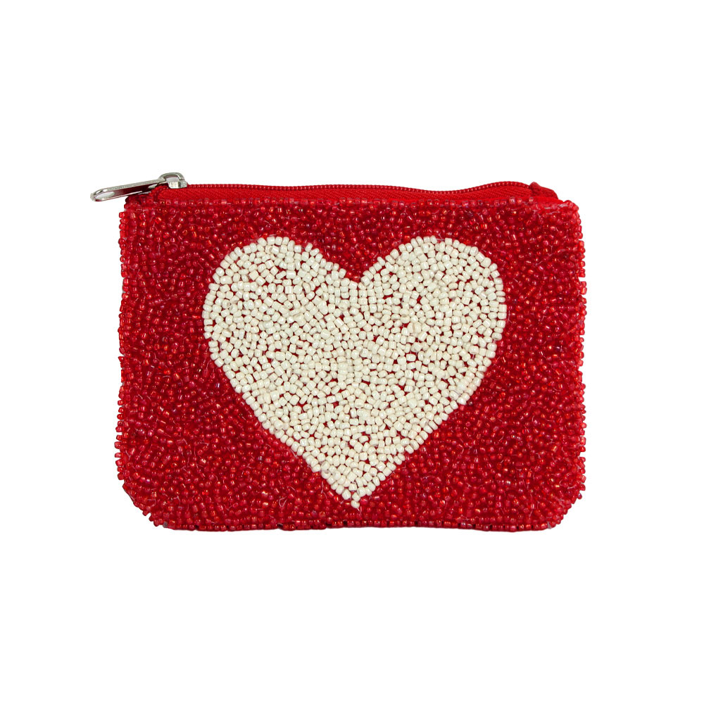 Details • Size : 5" X 4" • No Inside Pocket • Beads On Front Only • Zipper Closure • Charming beaded pouch featuring a large heart motif for a cute and expressive look. Ideal for carrying small essentials, gifting, themed events or adding playful personality to everyday accessories. A delightful piece that brings warmth and whimsy to any outfit. • Made In India