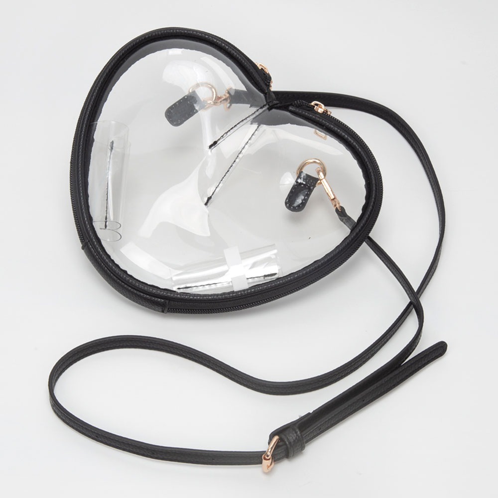 Details • Size : 8" X 8" X 3" • Strap Size : 47" L / Detachable, Adjustable • Stylish heart-shaped clear crossbody bag designed for concerts, events, and everyday outings. Compact yet practical for carrying essentials while staying hands-free. The transparent design meets venue requirements and adds a trendy statement to any casual or festive look.