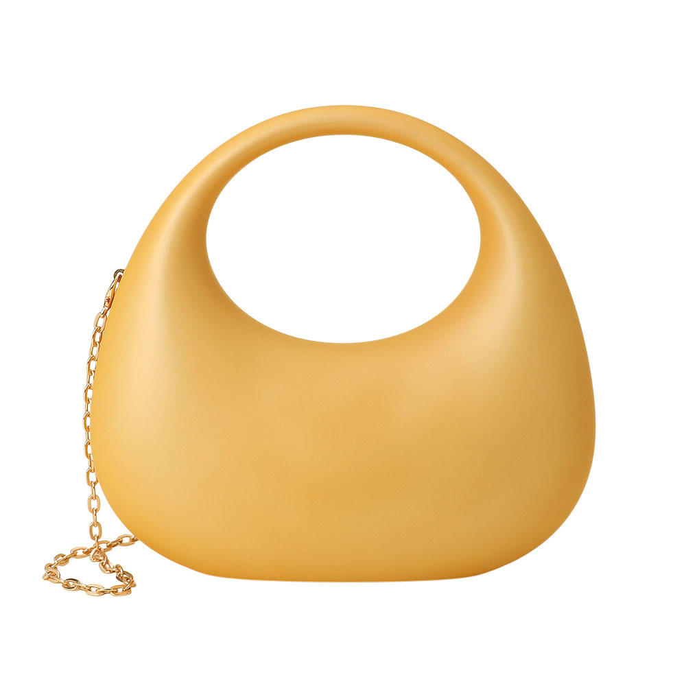 • This elegant sculpted handle shoulder bag features a smooth curved form and detachable chain strap for versatile styling. Designed with a modern minimalist shape, it’s perfect for both day and evening looks, offering a sleek balance of sophistication and functionality.