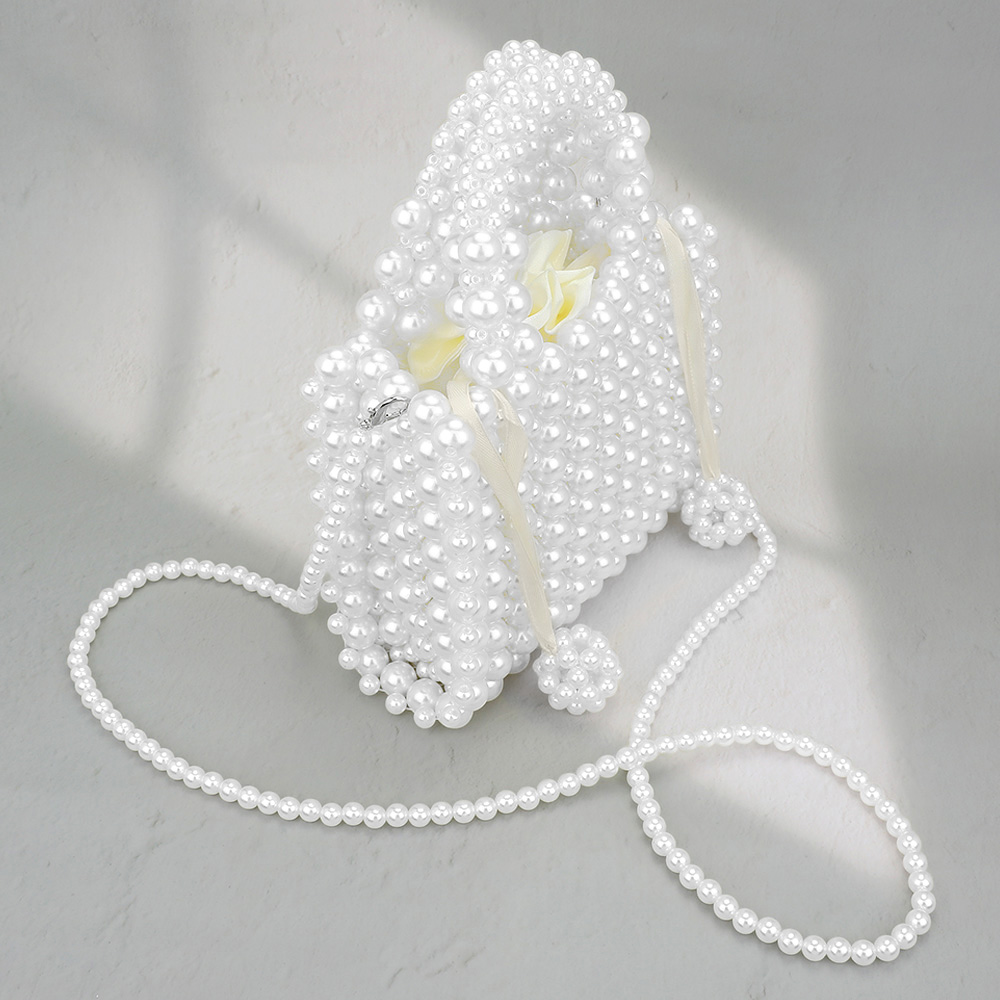 Details • Size : 7" X 5" X 2" • Top Handle Size : 2.5" L • Strap Size : 44" L / Detachable, Adjustable • Inside Pouch Size : 5" X 6.75" • Chic mini handbag featuring a structured pearl beaded exterior, dual handles, and a soft drawstring pouch. Ideal for weddings, parties, or formal events, it adds a refined and unique flair to any ensemble.