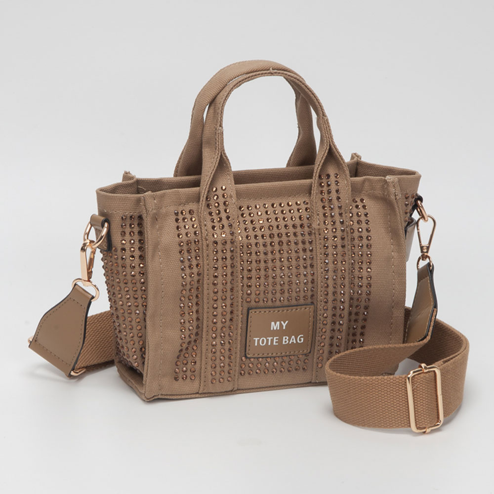 • Stylish small tote bag featuring a structured silhouette accented with sparkling embellishments for eye-catching appeal. Designed with top handles and an adjustable strap, this compact bag is perfect for carrying small essentials while adding a playful, fashion-forward touch to everyday looks and boutique collections.