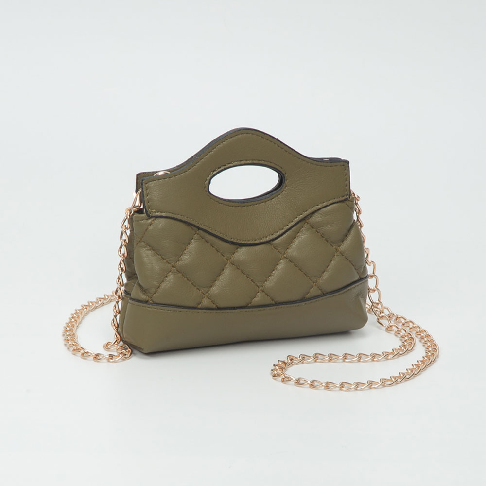 Details • Size : 5.5" X 4" X 1.25" • Top Handle Size : 0.8" L • Strap Size : 42" L / Detachable • Magnetic Closure • Stay stylish and organized with this mini quilted crossbody bag featuring a sleek chain strap and unique cutout handle. Perfect for carrying essentials like cards, keys, and small items, it offers trendy convenience for outings, travel, and everyday use while adding a chic touch to any look.