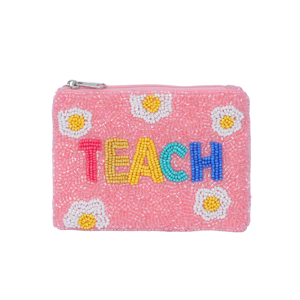 Details • Size : 5" X 3.75" (appx) • No Inside Pocket • Beads On Front Only • Bag Only (items are not included) • Zipper Closure • Celebrate educators with this charming beaded coin pouch featuring a bright “Teach” motif and playful daisy accents. Thoughtfully crafted for daily use, it keeps small essentials organized while adding a fun, uplifting touch to any teacher’s routine or gift collection. • Made In India