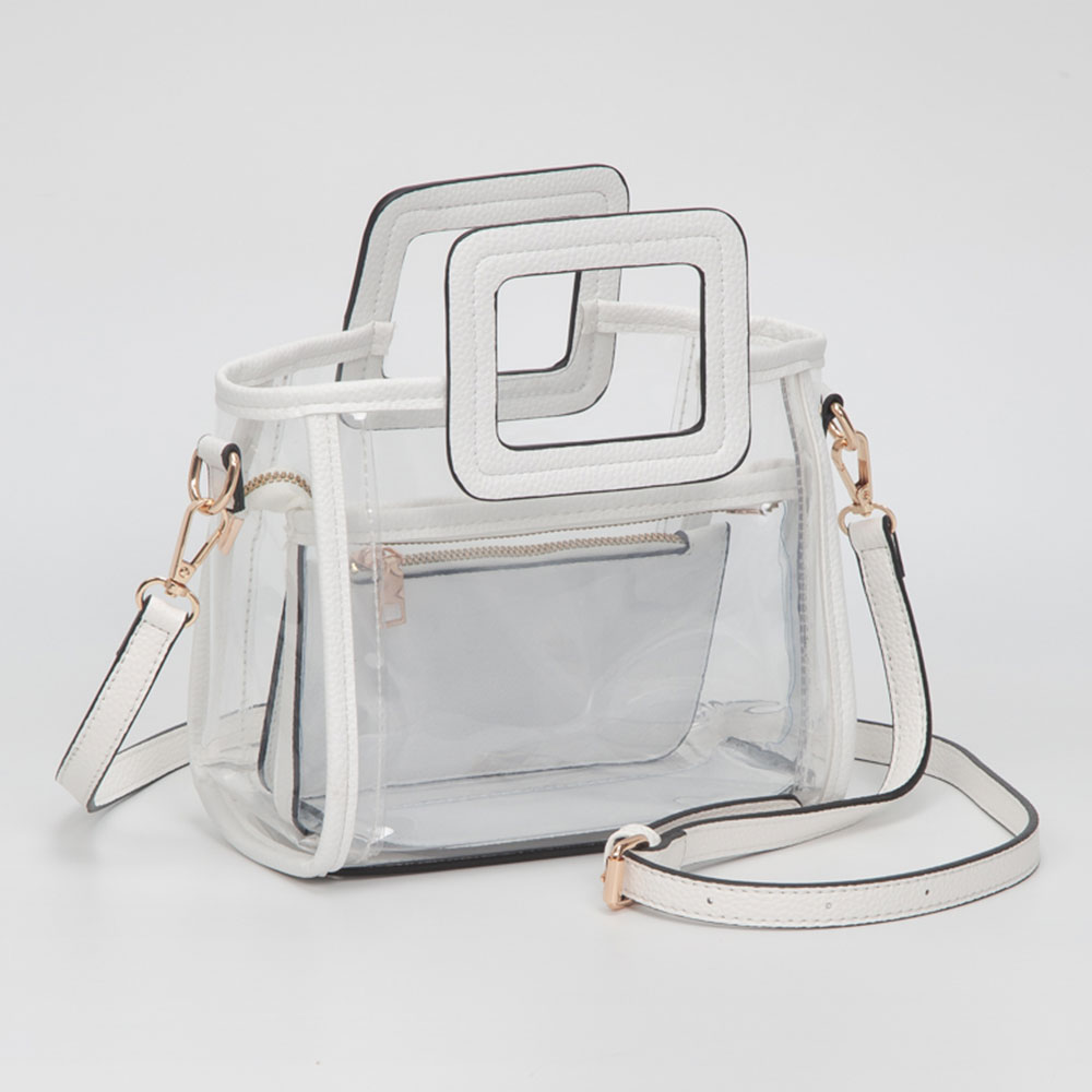 • Stylish clear 3-piece bag set featuring a structured top-handle tote, detachable crossbody insert and matching zip pouch. Ideal for stadium events and everyday organization, offering convenient storage, lightweight design and versatile carrying options for on-the-go use.