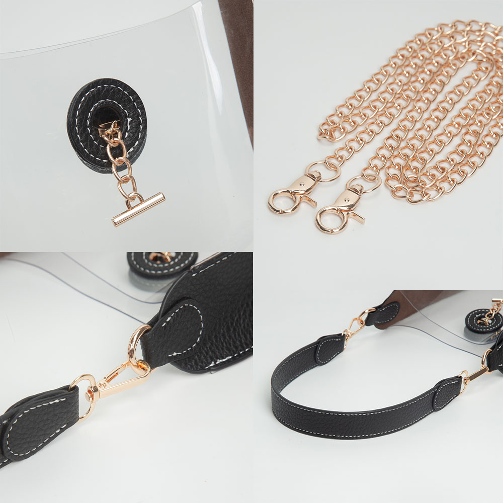 • This transparent chain shoulder bag blends modern minimalism with chic detailing. Featuring a clear structured body, secure clasp, and metallic chain strap, it’s perfect for concerts, events, or everyday outings, offering easy visibility and sleek sophistication in one stylish piece.