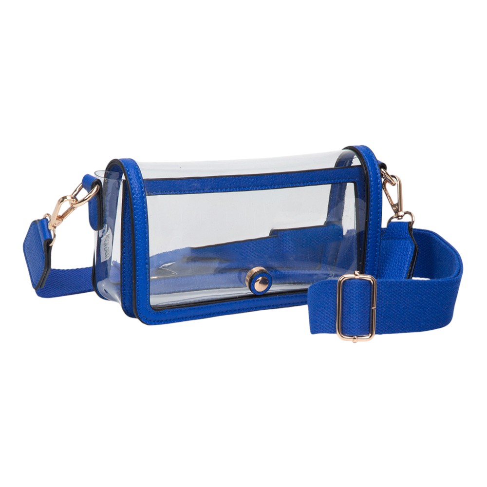 • Stay stylish and compliant with this clear stadium-approved crossbody bag, featuring black trim, secure snap closure, and an adjustable shoulder strap for comfort. Perfect for concerts, sporting events, festivals, and everyday use, offering convenience while meeting event regulations with ease.