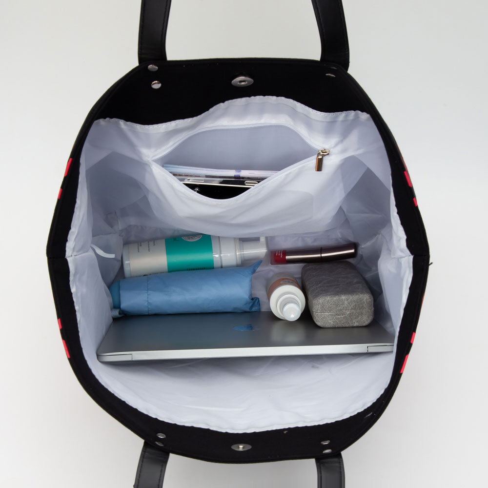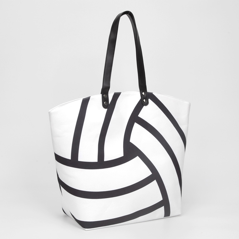 Details • Size : 21" X 15" X 7" • Top Handle Size : 9" L • One Inside Zipper Pocket • Magnetic Closure • Show your sporty style with this volleyball print tote bag. Featuring a bold graphic design and spacious interior, it’s perfect for carrying essentials to practice, the gym, or the beach. Durable handles and a sleek silhouette make it both functional and fashionable.