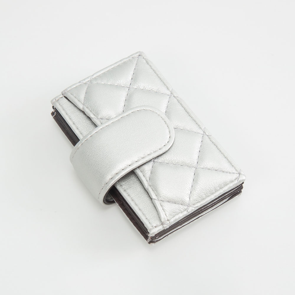 • This quilted snap closure card holder wallet combines elegance and practicality in a compact design. Featuring multiple slots for cards and essentials, it keeps your belongings organized and secure. Perfect for minimalists who value style and everyday convenience.