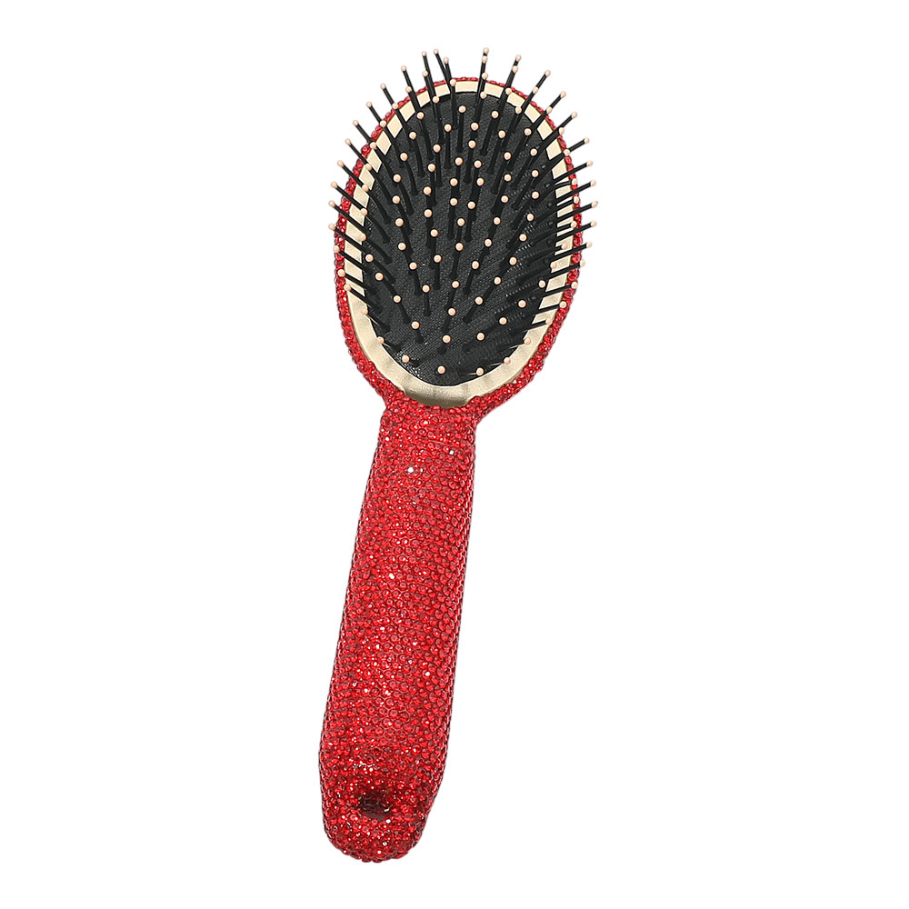 Details • Size : 3" X 9.5" • Statement hair brush designed with a crystal style handle and cushioned bristle base to help detangle and smooth hair with ease. Comfortable to hold and gentle on the scalp, this glam beauty essential is ideal for daily styling, gifting, or adding a polished touch to vanities and salon displays.