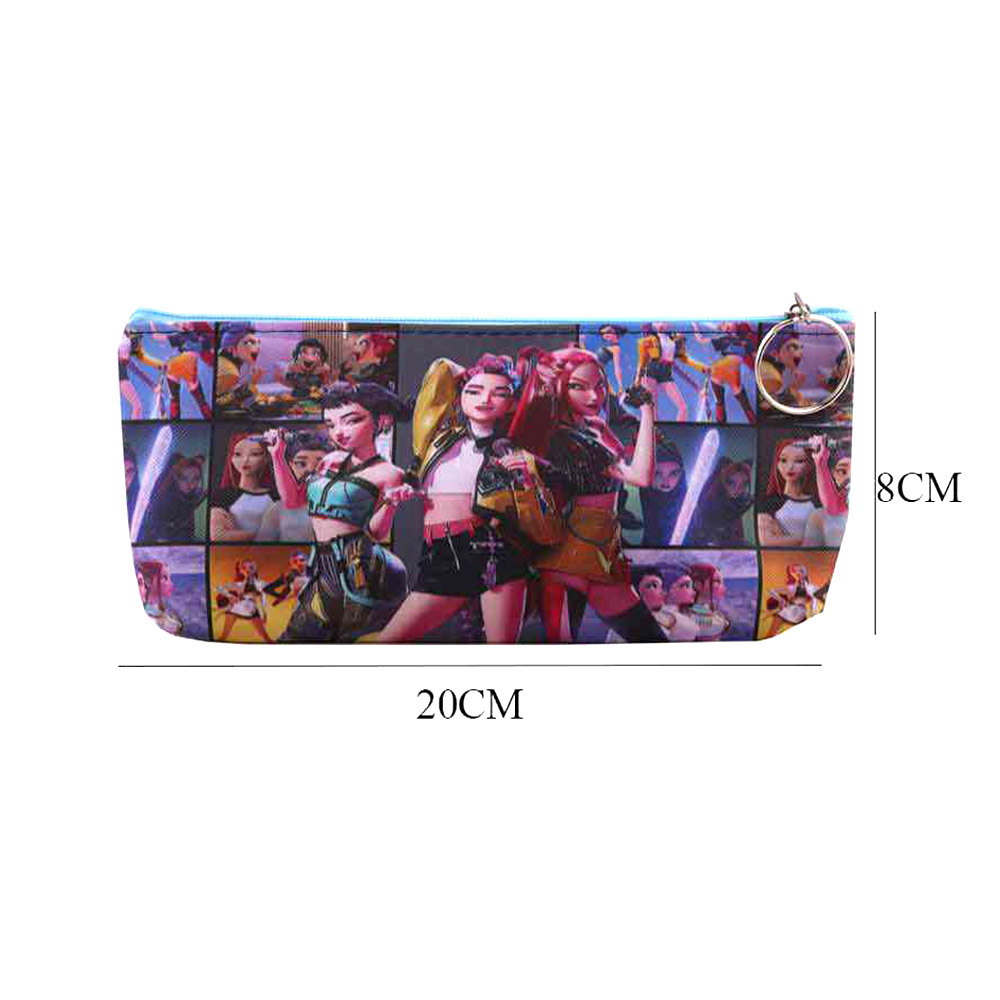 Details • Size : 7.9" X 3.1" X 0.8" • Zipper Closure • Fan inspired graphic pencil pouch featuring K-Pop Demon Hunters characters. Designed for storing stationery, cosmetics, or small essentials, this compact zip pouch is perfect for school, travel, or everyday organization. A practical accessory that adds bold pop culture style to daily use.