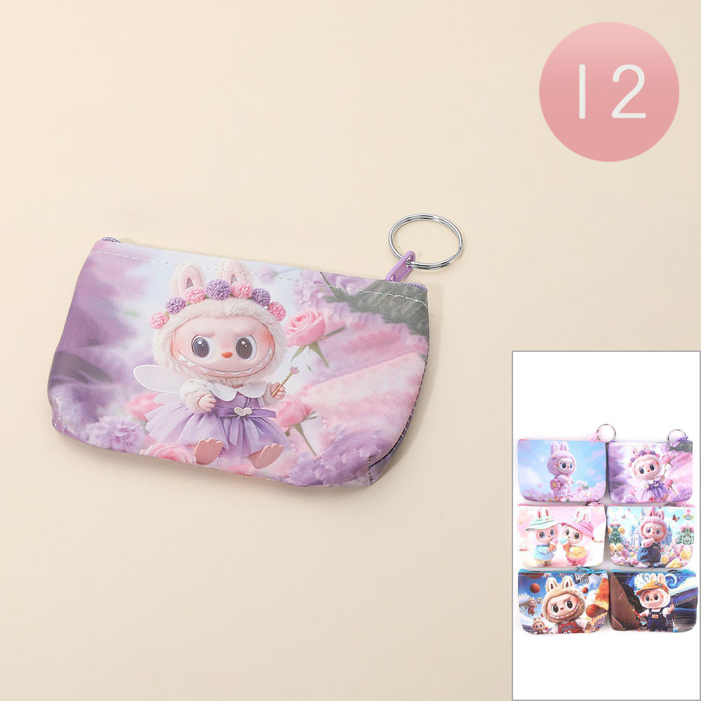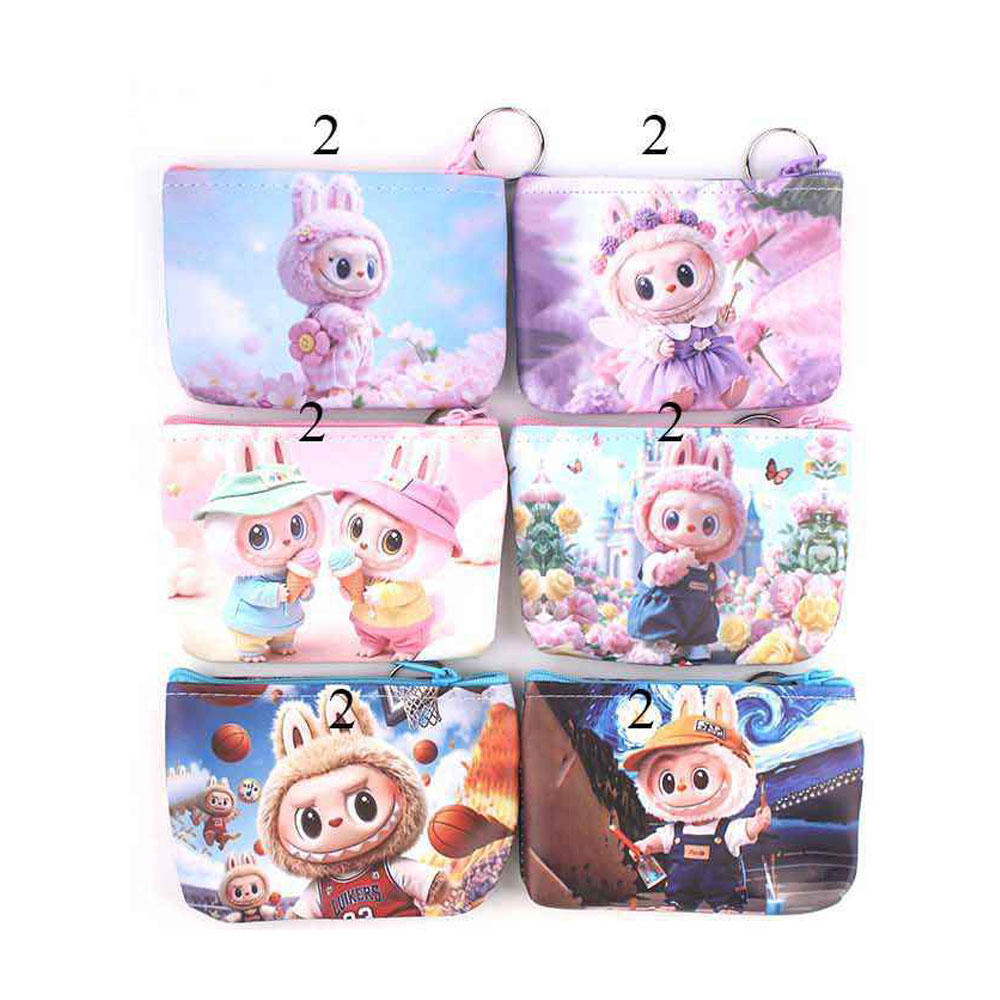 Details • Size : 5" X 3.5" • Zipper Closure • This monster bunny printed keychain pouch coin purse offers a charming and practical way to store small essentials. Featuring adorable character artwork and a compact, easy-to-carry design, it’s perfect for organizing coins, trinkets, or tiny treasures while adding a touch of playful personality to everyday use.