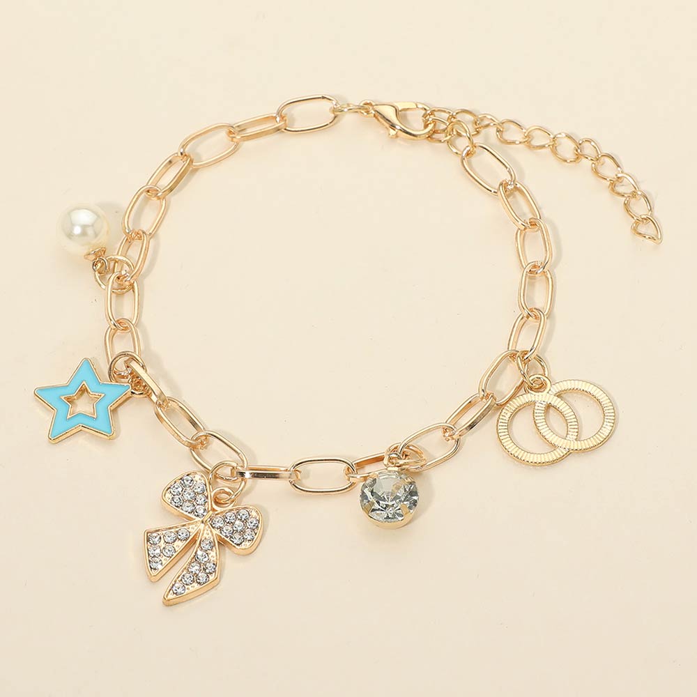 12PCS - Bow Star Pearl Charm Station Paperclip Chain Bracelets
