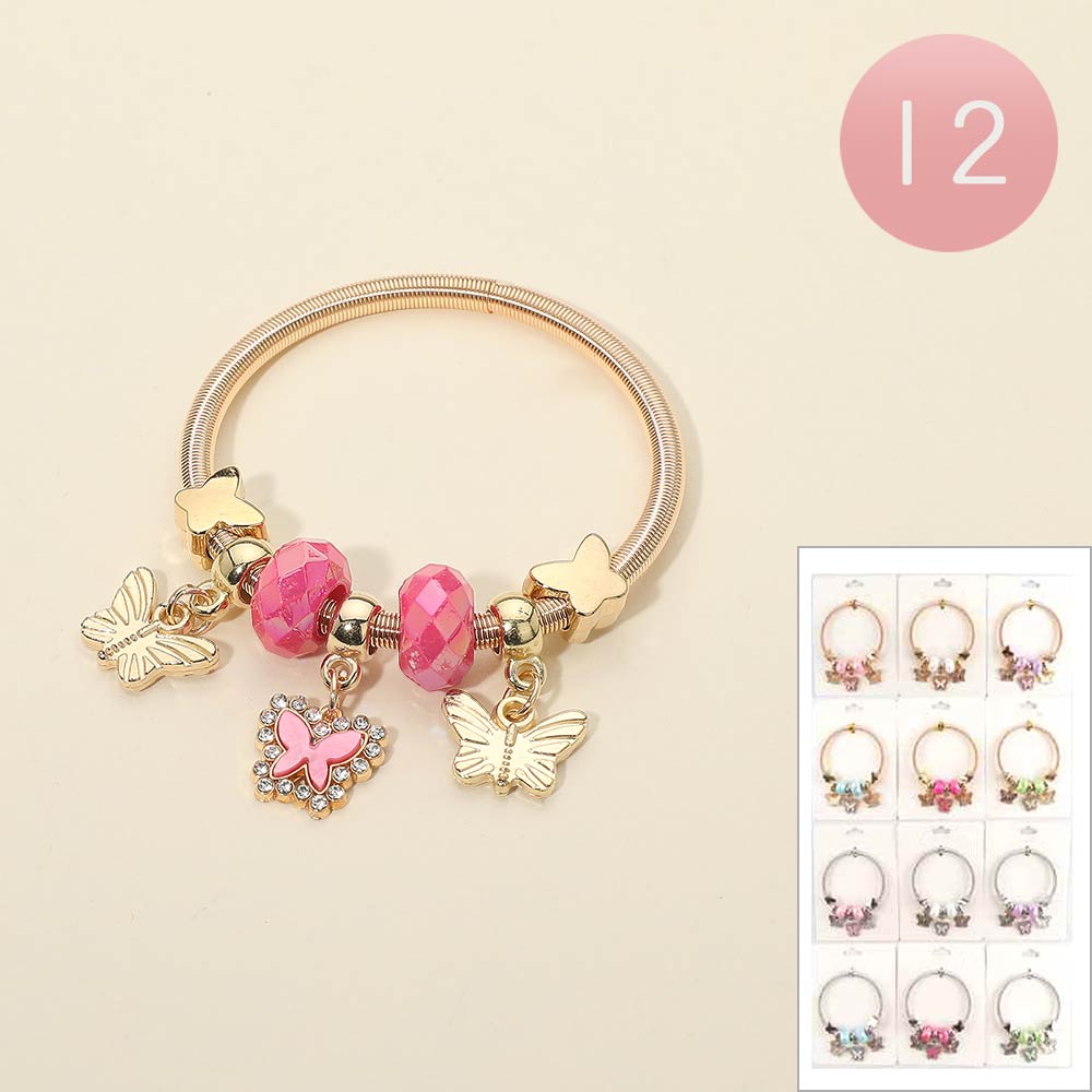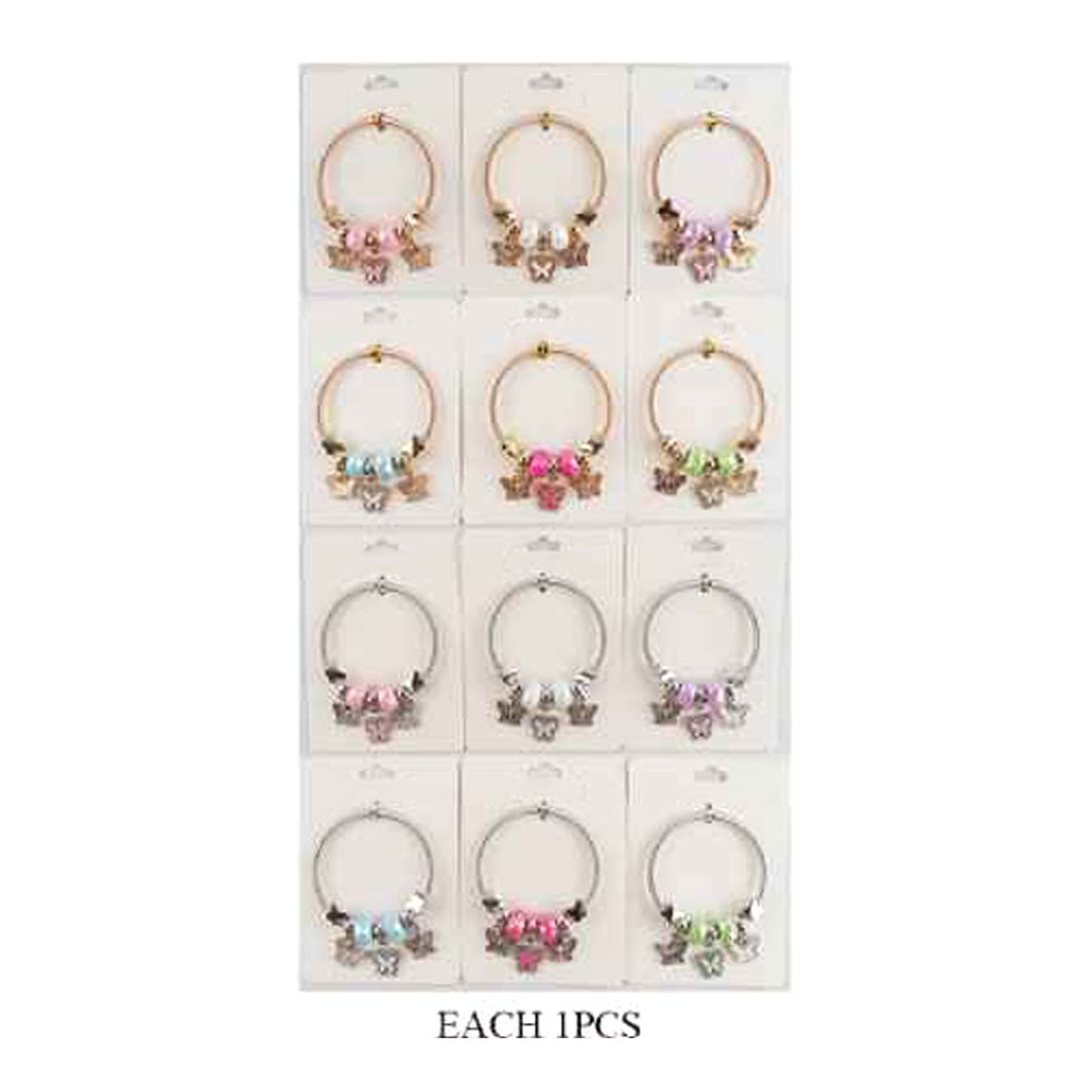 Details • Size : 0.2" H • Charm Size : 1" L • Stretchable • This butterfly charm accent bracelet features a flexible band design with playful dangling charms that add movement and visual interest. Ideal for gift shops and seasonal collections, it delivers a fun, youthful statement that layers easily with other accessories for everyday or special occasion styling.