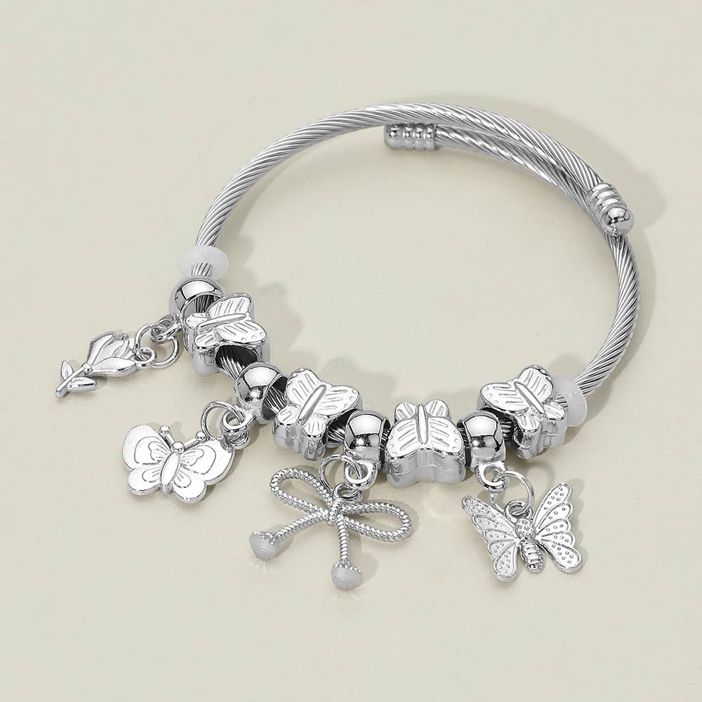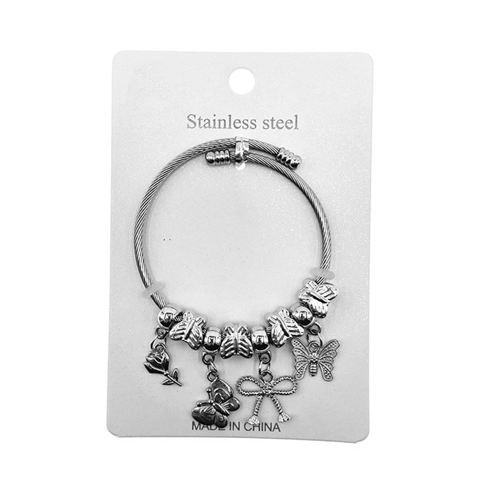 • This adjustable cable bracelet features delicate butterfly charms paired with smooth accent beads for a graceful, feminine look. Designed for easy wear and flexible sizing, it adds playful movement and elegant detail to everyday outfits or special occasion styling, making it a charming addition to boutique jewelry collections and gift assortments.