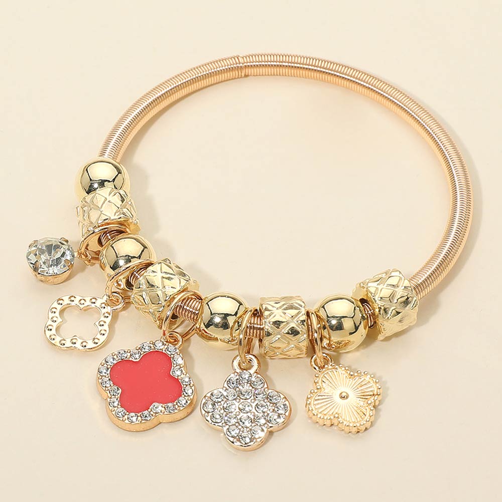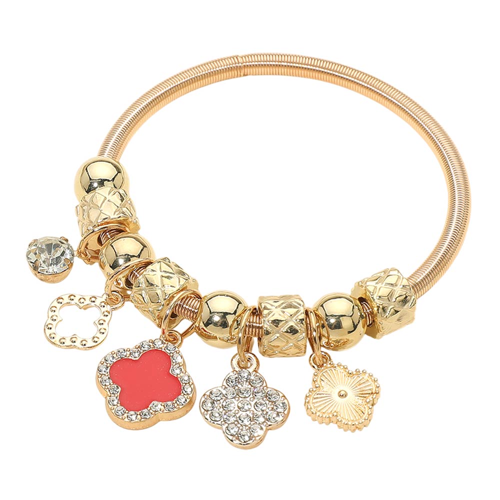 12PCS - Quatrefoil Charm Beaded Stretch Bracelets