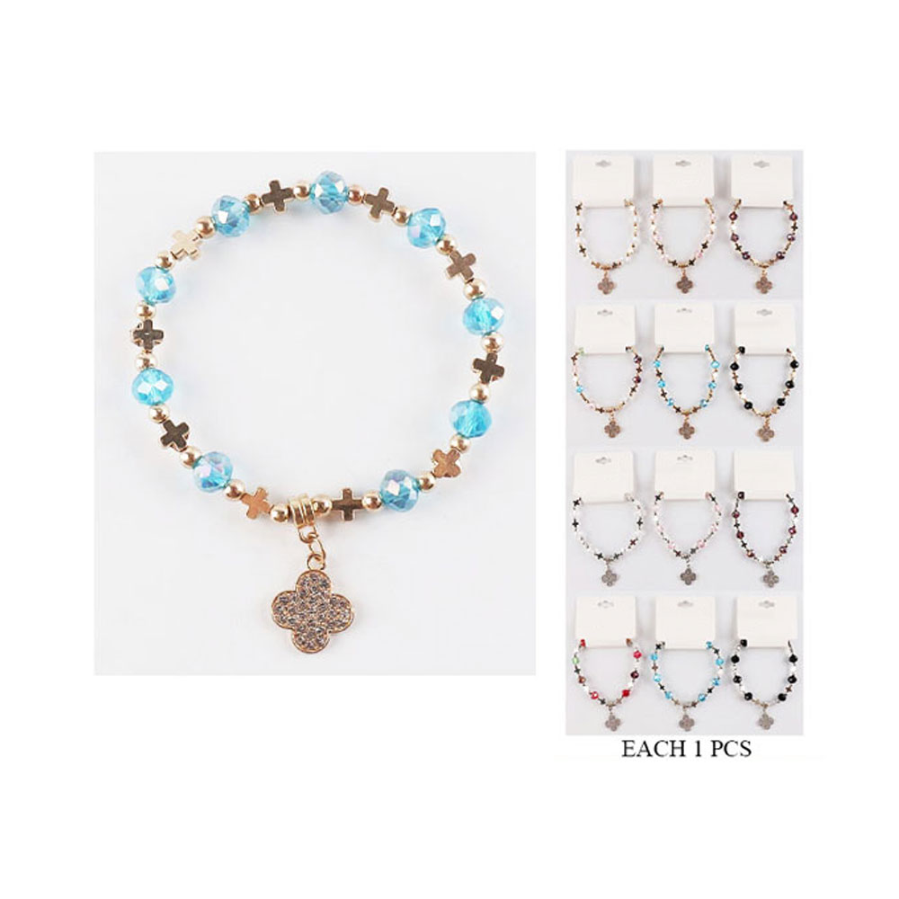 12PCS - Stone Paved Quatrefoil Charm Cross Faceted Beaded Stretch Bracelets 12PCS - Stone Paved Quatrefoil Charm Cross Faceted Beaded Stretch Bracelets 12PCS - Stone Paved Quatrefoil Charm Cross Faceted Beaded Stretch Bracelets 12PCS - Stone Paved Quatrefoil Charm Cross Faceted Beaded Stretch Bracelets