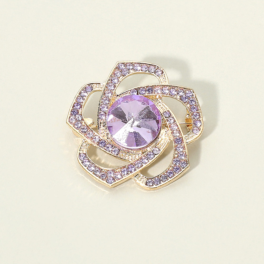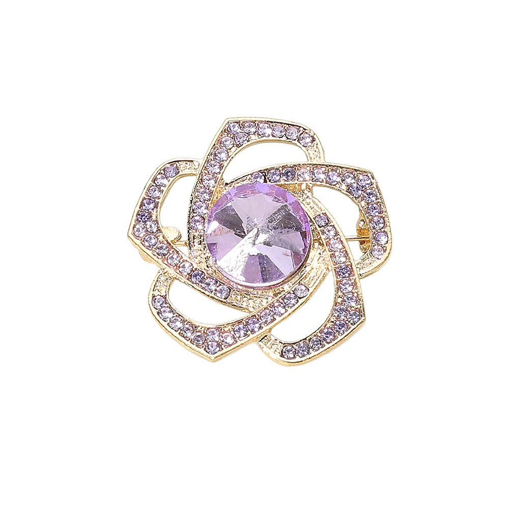 Details • Size : 1.4" X 1.4" • Pin Brooch • Elegant flower brooch featuring a shimmering gemstone center and sparkling accents arranged in a graceful design. Ideal for adding charm to jackets, scarves, hats, or bags, this accessory brings a refined touch and makes a lovely gift or collectible piece.