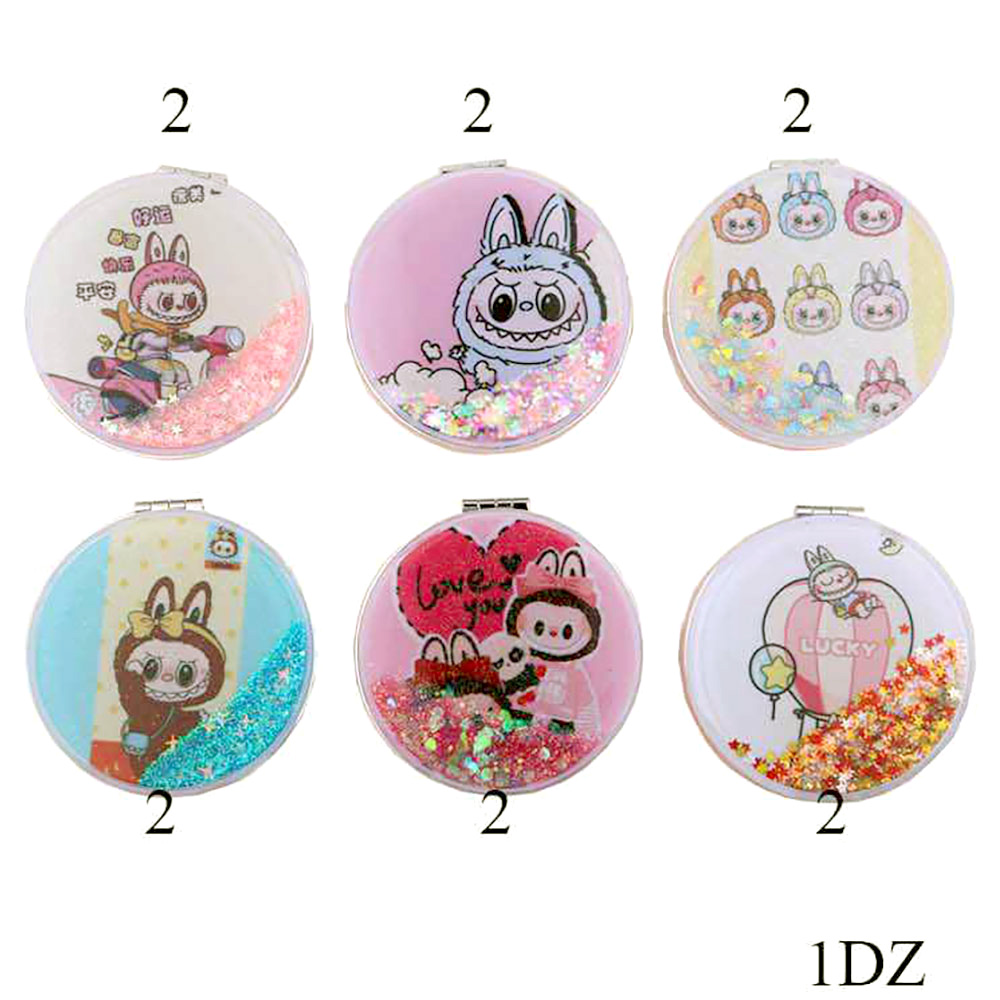 Details • Size : 2.75" X 2.75" • 2 In 1 - Plain Mirror And Magnifying Mirror • Adorable monster bunny character printed compact mirror with floating glitter design. Lightweight and perfect for purses, travel, or daily touch-ups. A fun and trendy accessory for makeup lovers, teens, and gifting. Collect all styles for a playful beauty essential.