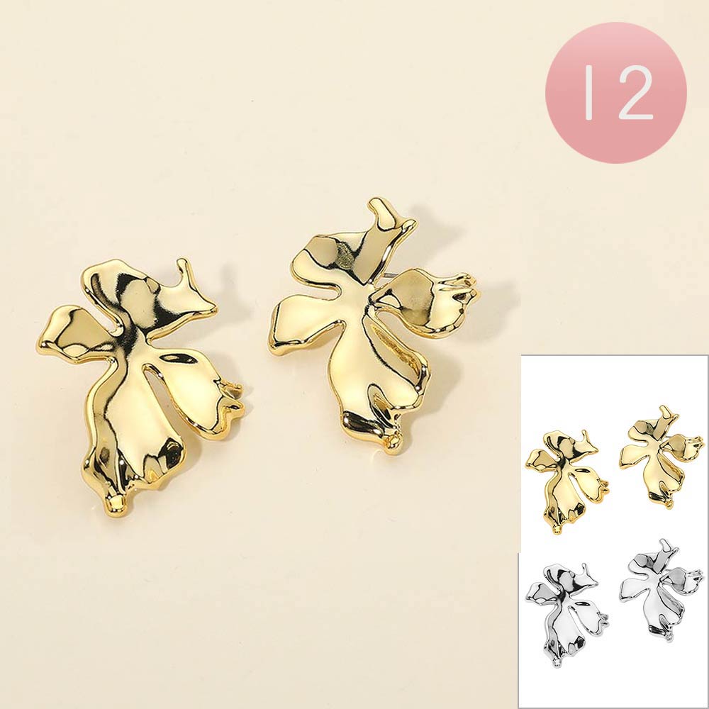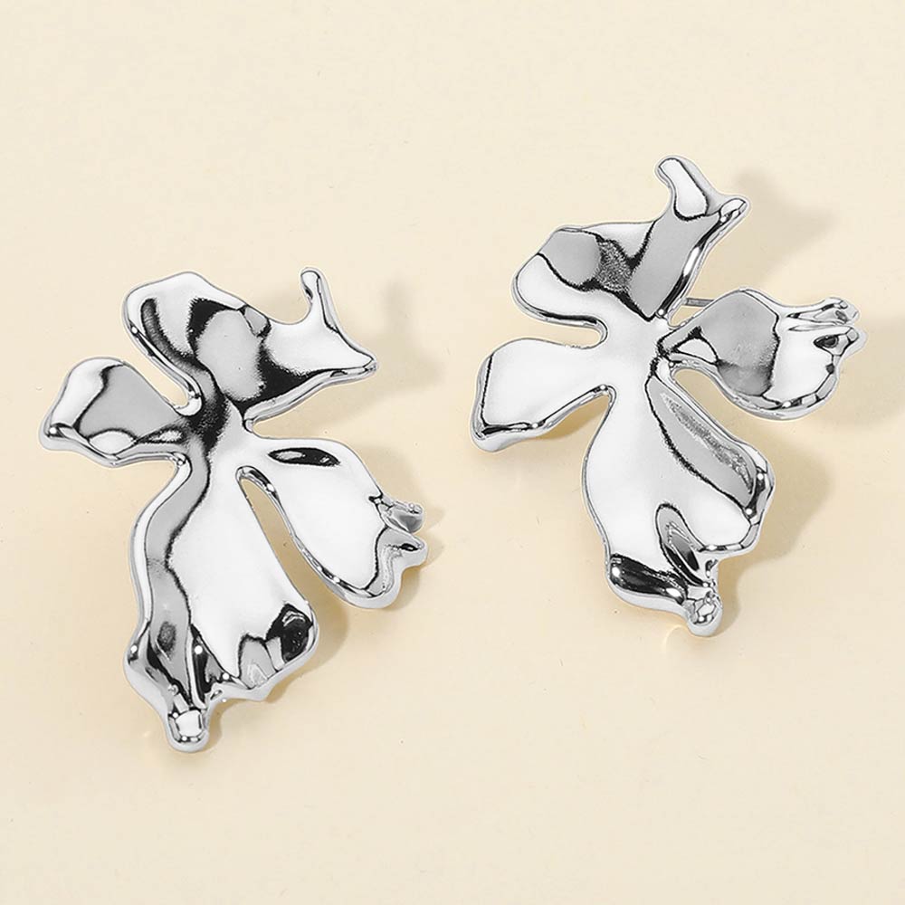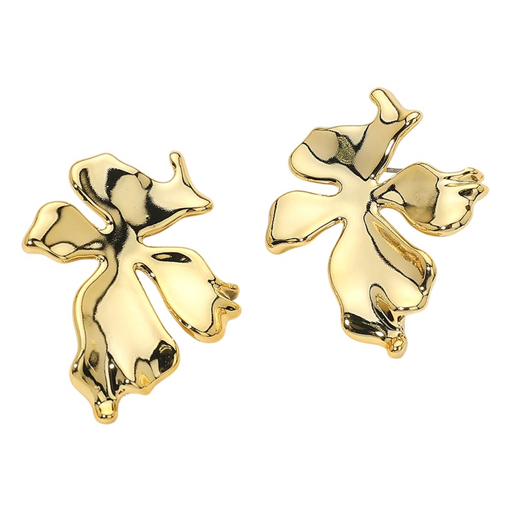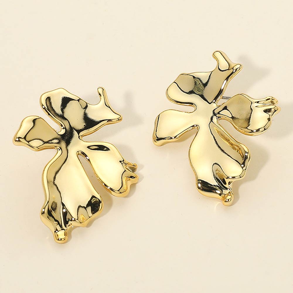Details • Size : 1.4" X 1.7" • Post Back • Modern stud earrings featuring an abstract floral-inspired silhouette with fluid, sculptural curves. Designed for a bold yet minimalist look, these lightweight studs add artistic character and subtle edge to everyday outfits, workwear, or special occasions. A versatile statement piece ideal for boutique jewelry collections and trend-focused displays.