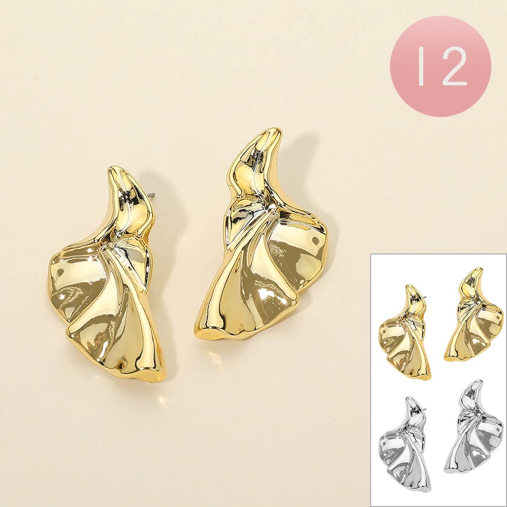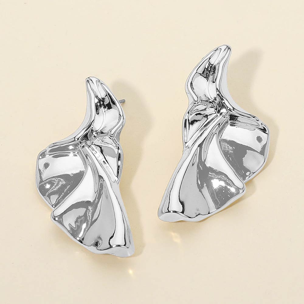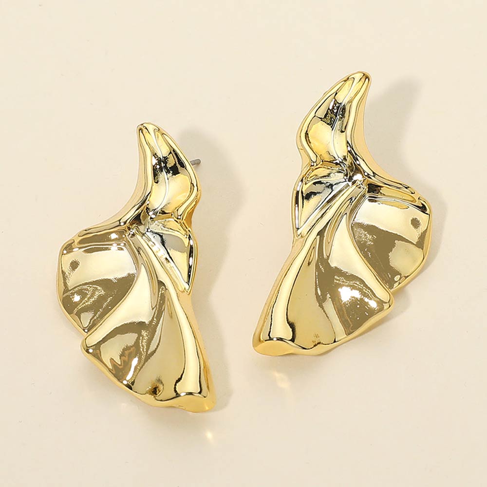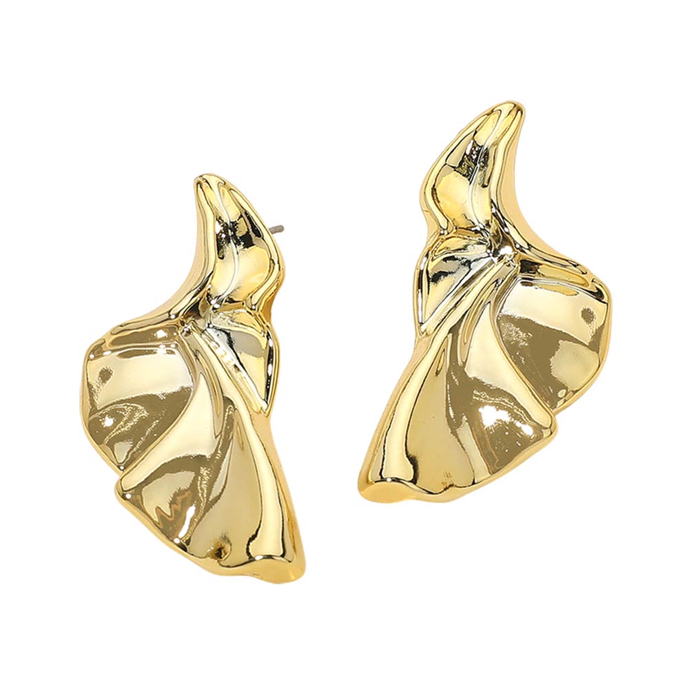 Details • Size : 0.75" X 1.6" • Post Back • These abstract wave stud earrings feature a fluid sculptural design with a high-shine finish that creates a bold modern statement. The organic silhouette adds artistic elegance, making them ideal for everyday styling or elevated looks that stand out effortlessly.