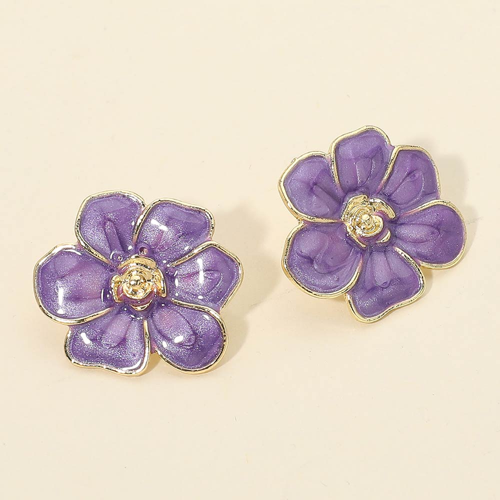 Details • Size : 1" X 0.9" • Post Back • These enamel flower stud earrings feature a sculpted petal silhouette with a glossy finish and a detailed center accent. Designed for everyday wear, they add a feminine, playful touch to casual outfits, gifts, and seasonal collections.