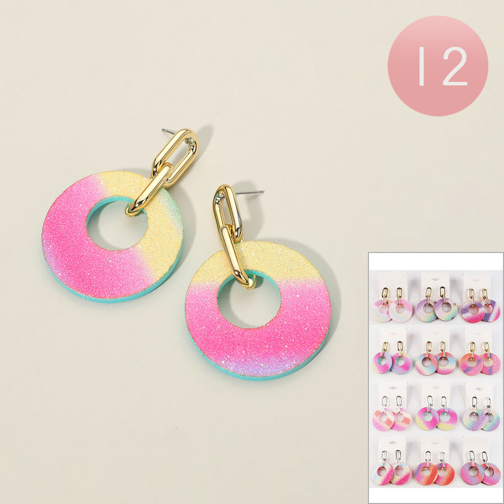 12Pairs - Glitter Gradient Circle Drop Earrings